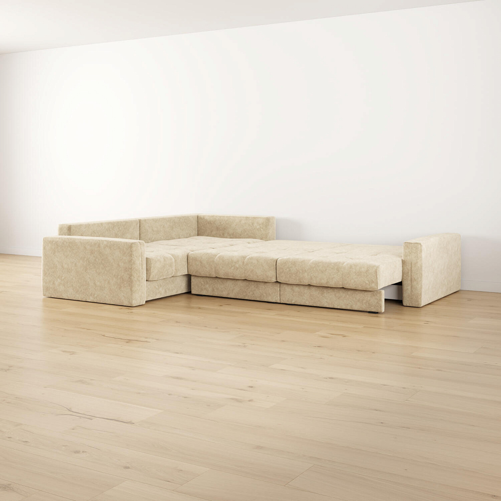 - Размер спального места — 300 х 160 см. Диван легко трансформируется в полноценное двуспальное место.