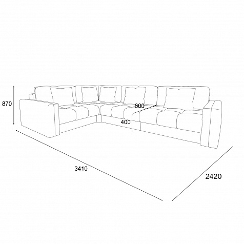 Глубина посадочного места: с подушками — 60 см, без подушек — 100 см.