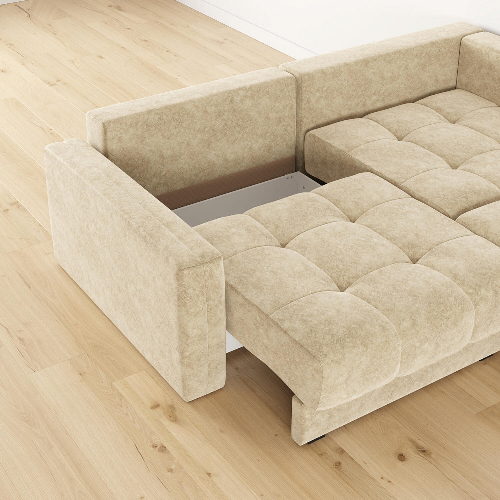 - Два короба для белья. В диване и шезлонге предусмотрены вместительные отделения для хранения постельного белья и других вещей.