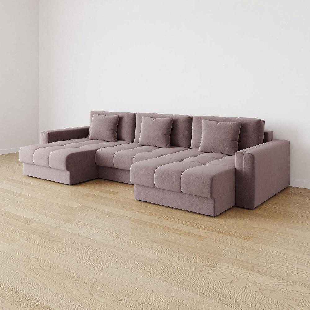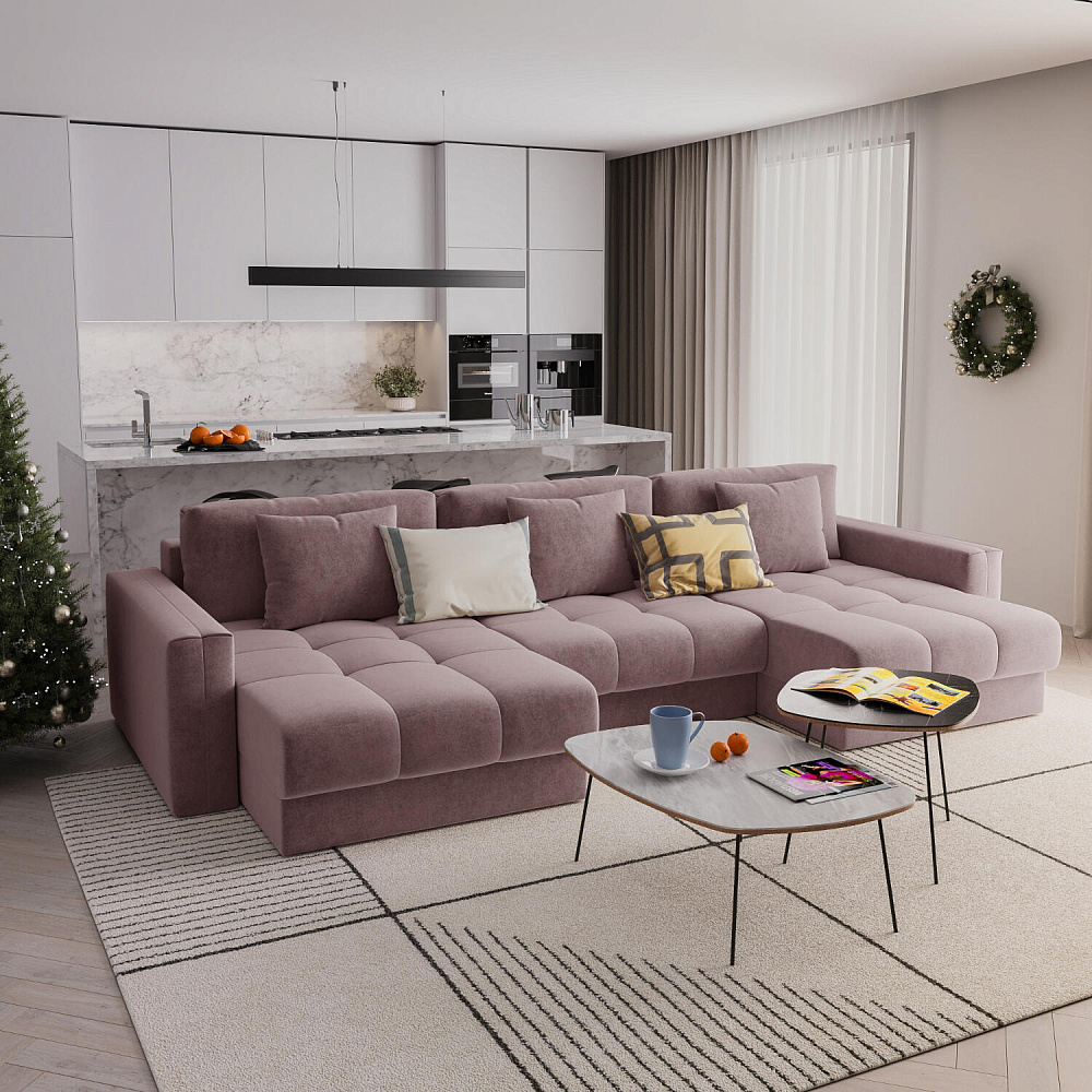 П-образный угловой диван «Дензел» — лучший вариант для ценителей комфорта и удобства в сочетании со стильным дизайном. Диван обладает глубокой посадкой, а приспинные и декоративные подушки позволят создать удобное место для отдыха. Угловая модель с двумя оттоманками займёт своё идеальное место в пространстве комнаты или студии. Спинка модели выполнена в обивочной ткани, что даёт возможность использовать диван для зонирования комнаты.
