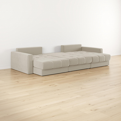 - Размер спального места — 300 х 147 см. Диван легко трансформируется в широкое спальное место для комфортного сна и отдыха двух человек.