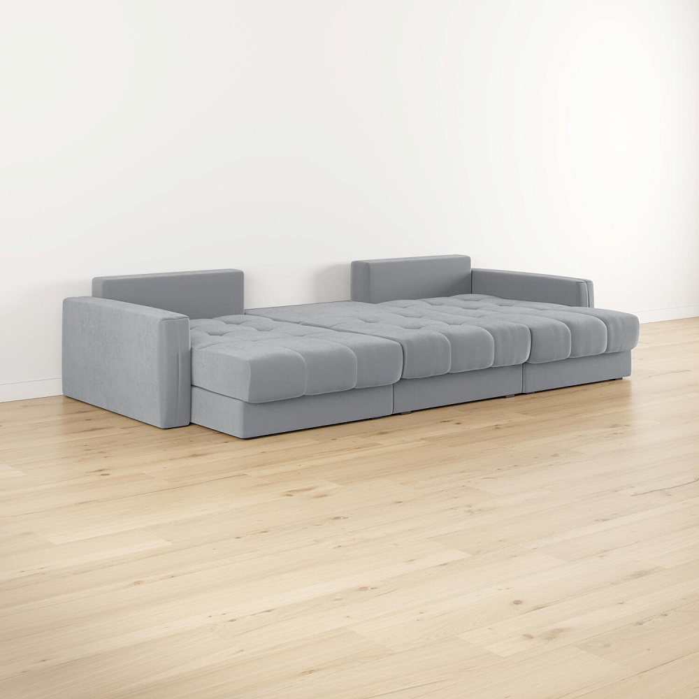 - Размер спального места — 300 х 147 см. Диван легко трансформируется в широкое спальное место для комфортного сна и отдыха двух человек.