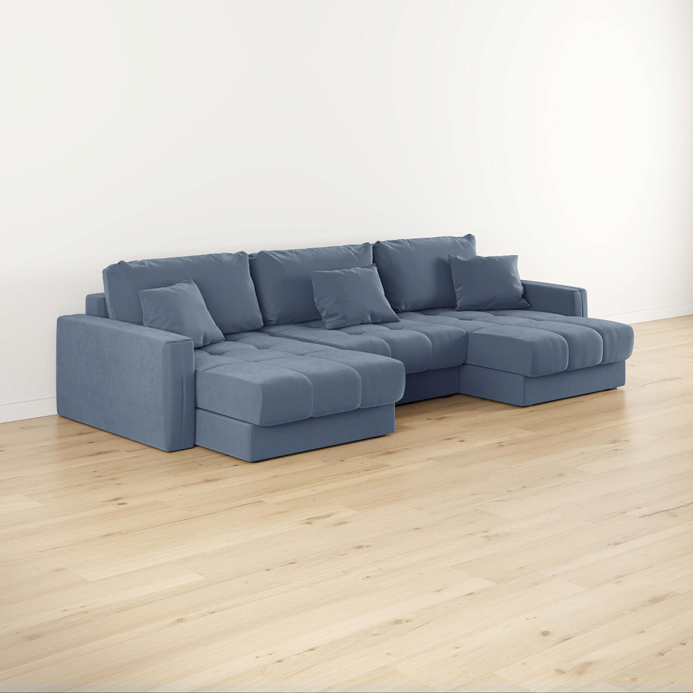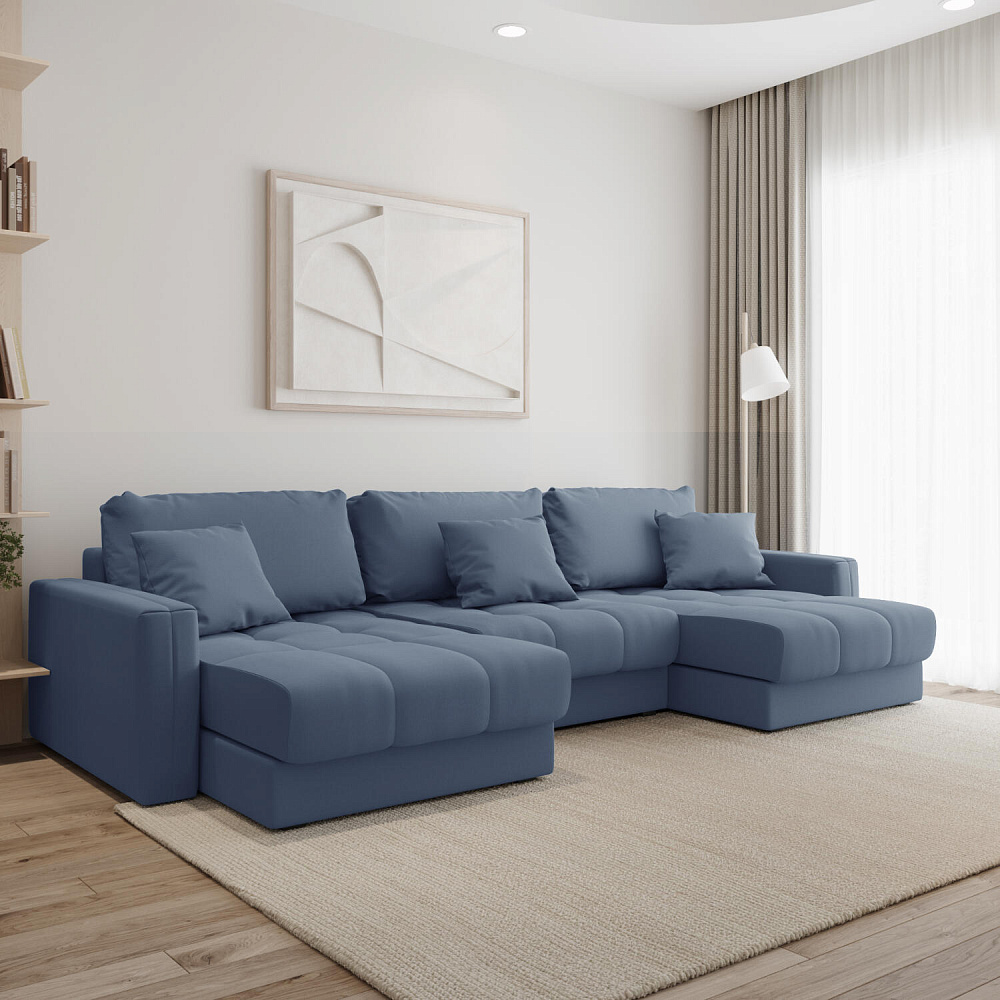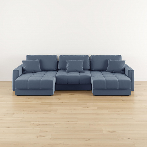 П-образный угловой диван «Дензел» — лучший вариант для ценителей комфорта и удобства в сочетании со стильным дизайном. Диван обладает глубокой посадкой, а приспинные и декоративные подушки позволят создать удобное место для отдыха. Угловая модель с двумя оттоманками займёт своё идеальное место в пространстве комнаты или студии. Спинка модели выполнена в обивочной ткани, что даёт возможность использовать диван для зонирования комнаты.