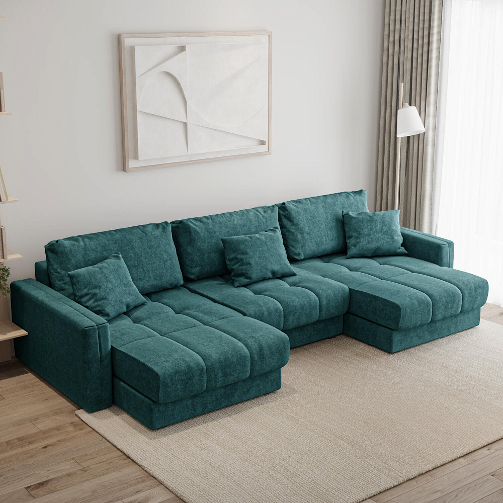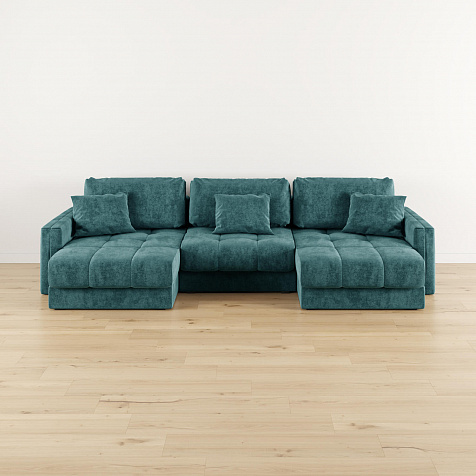 П-образный угловой диван «Дензел» — лучший вариант для ценителей комфорта и удобства в сочетании со стильным дизайном. Диван обладает глубокой посадкой, а приспинные и декоративные подушки позволят создать удобное место для отдыха. Угловая модель с двумя оттоманками займёт своё идеальное место в пространстве комнаты или студии. Спинка модели выполнена в обивочной ткани, что даёт возможность использовать диван для зонирования комнаты.