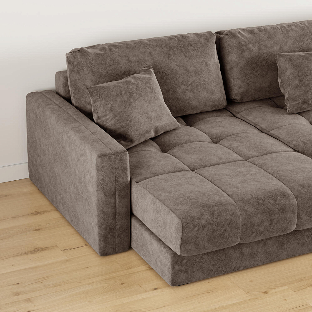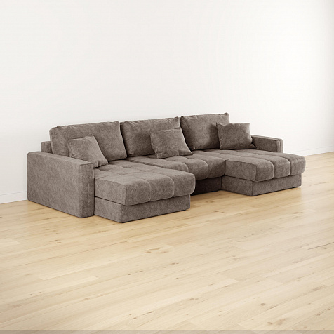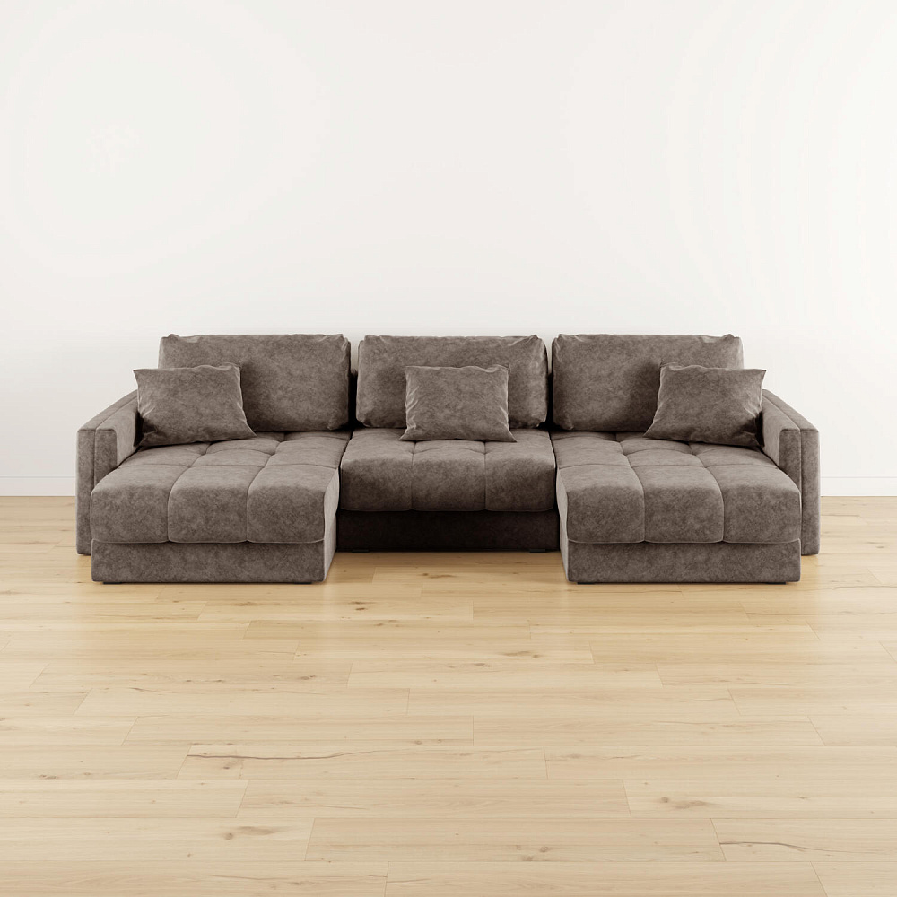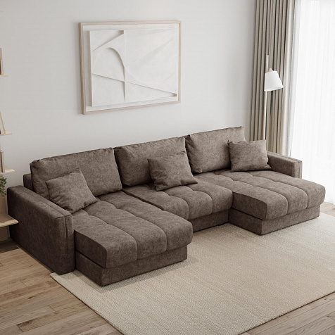 П-образный угловой диван «Дензел» — лучший вариант для ценителей комфорта и удобства в сочетании со стильным дизайном. Диван обладает глубокой посадкой, а приспинные и декоративные подушки позволят создать удобное место для отдыха. Угловая модель с двумя оттоманками займёт своё идеальное место в пространстве комнаты или студии. Спинка модели выполнена в обивочной ткани, что даёт возможность использовать диван для зонирования комнаты.