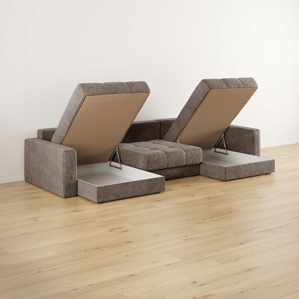 - Коробы для хранения. В диванной секции и шезлонгах предусмотрены вместительные отделения для хранения постельного белья и других вещей.