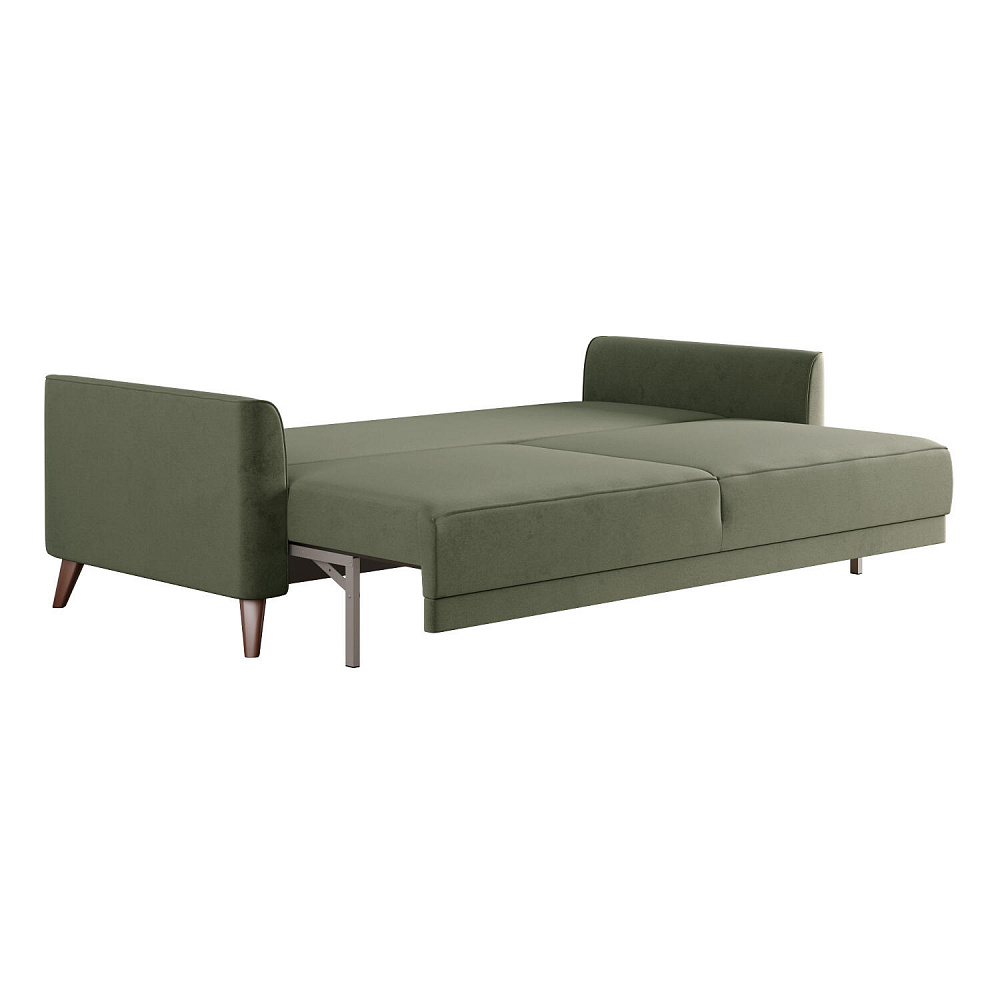Диван «Монз» с глубокой посадкой оснащён механизмом трансформации и большим бельевым коробом. Дизайн отличается оригинальной строчкой на сиденье и приспинных подушках, декоративными подушками в комплекте и узкими подлокотниками. Высокие опоры визуально облегчают конструкцию дивана и открывают доступ к уборке пространства под ним.