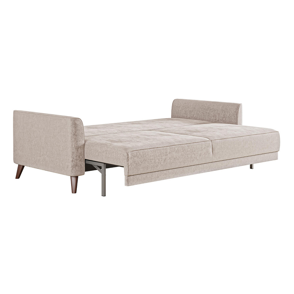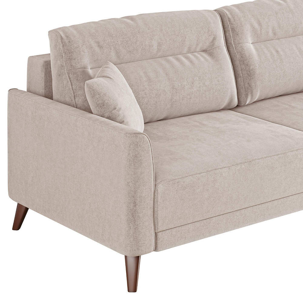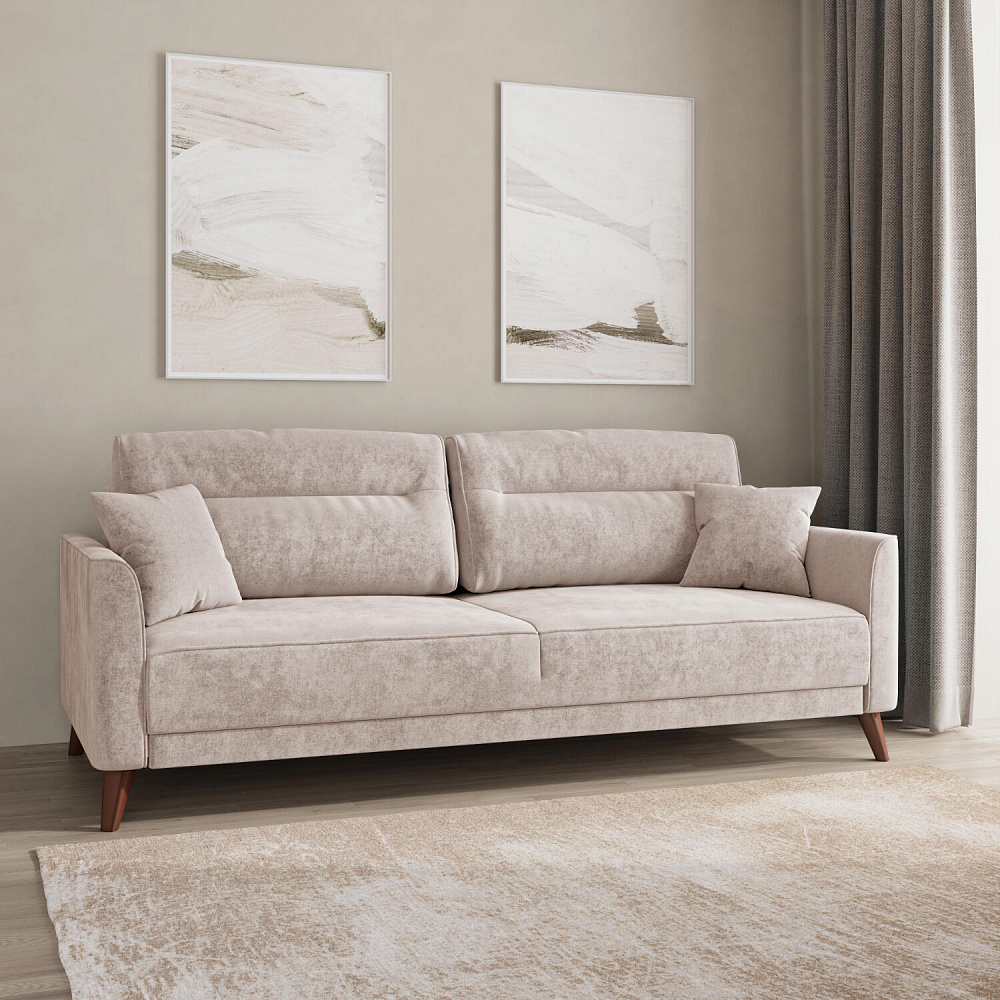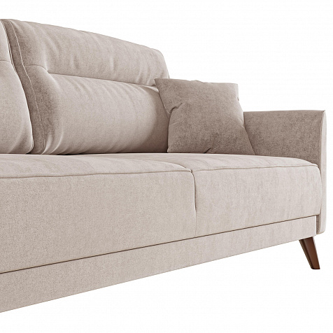 Диван «Монз» с глубокой посадкой оснащён механизмом трансформации и большим бельевым коробом. Дизайн отличается оригинальной строчкой на сиденье и приспинных подушках, декоративными подушками в комплекте и узкими подлокотниками. Высокие опоры визуально облегчают конструкцию дивана и открывают доступ к уборке пространства под ним.