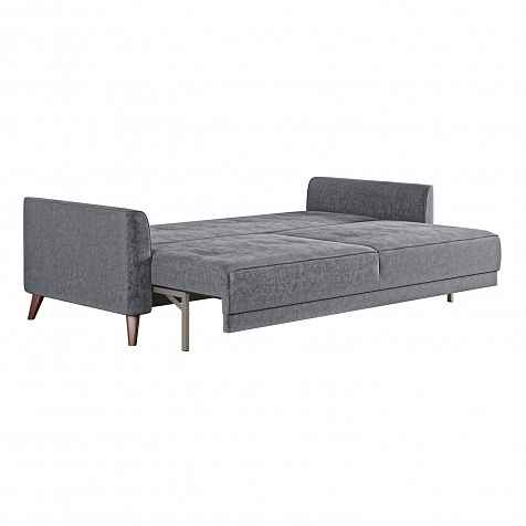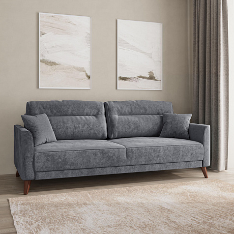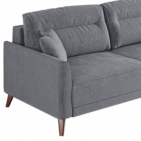 Диван «Монз» с глубокой посадкой оснащён механизмом трансформации и большим бельевым коробом. Дизайн отличается оригинальной строчкой на сиденье и приспинных подушках, декоративными подушками в комплекте и узкими подлокотниками. Высокие опоры визуально облегчают конструкцию дивана и открывают доступ к уборке пространства под ним.