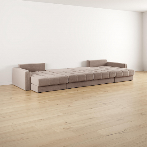 - Размер спального места — 400 х 167 см. Диван легко трансформируется в широкое спальное место для комфортного сна и отдыха двух человек.