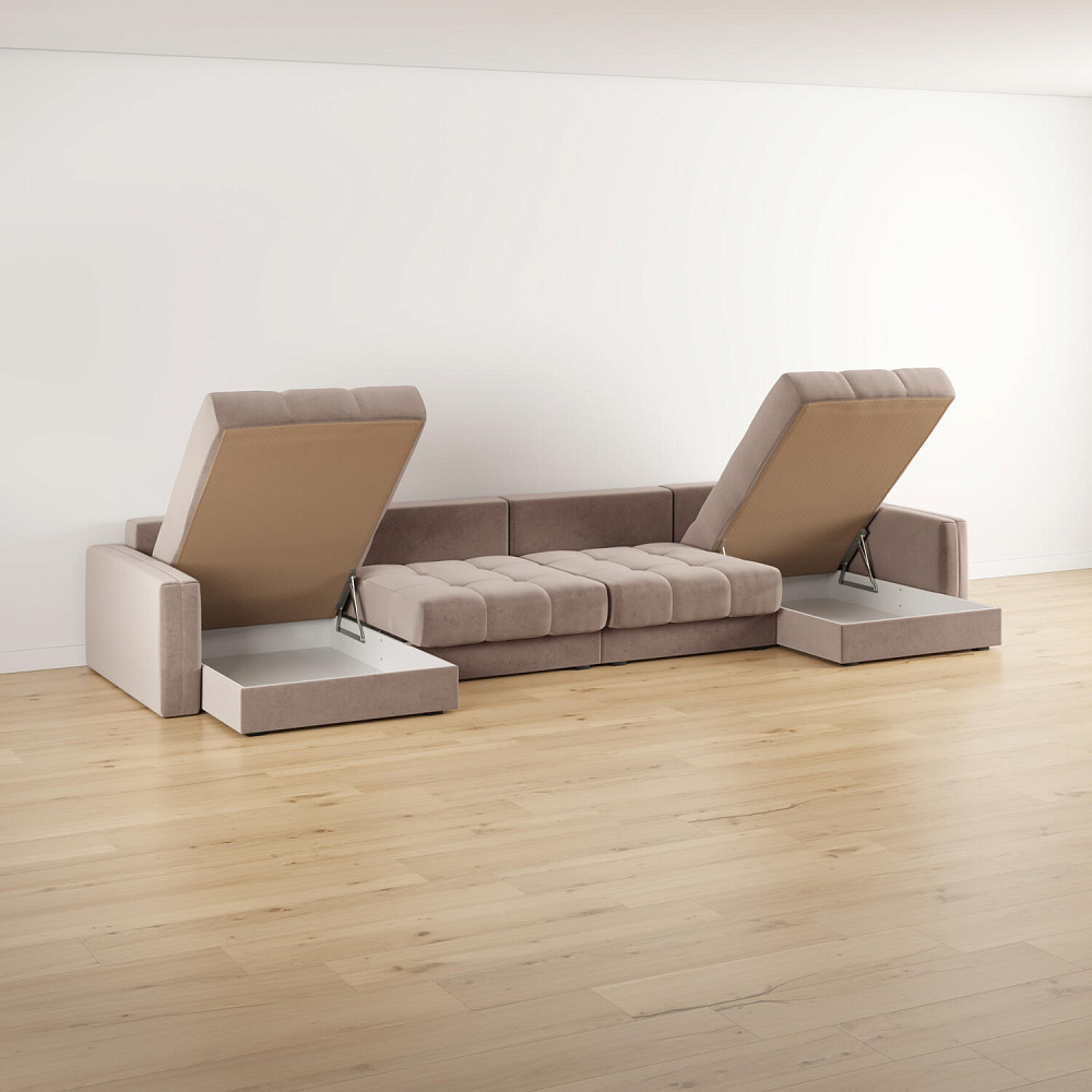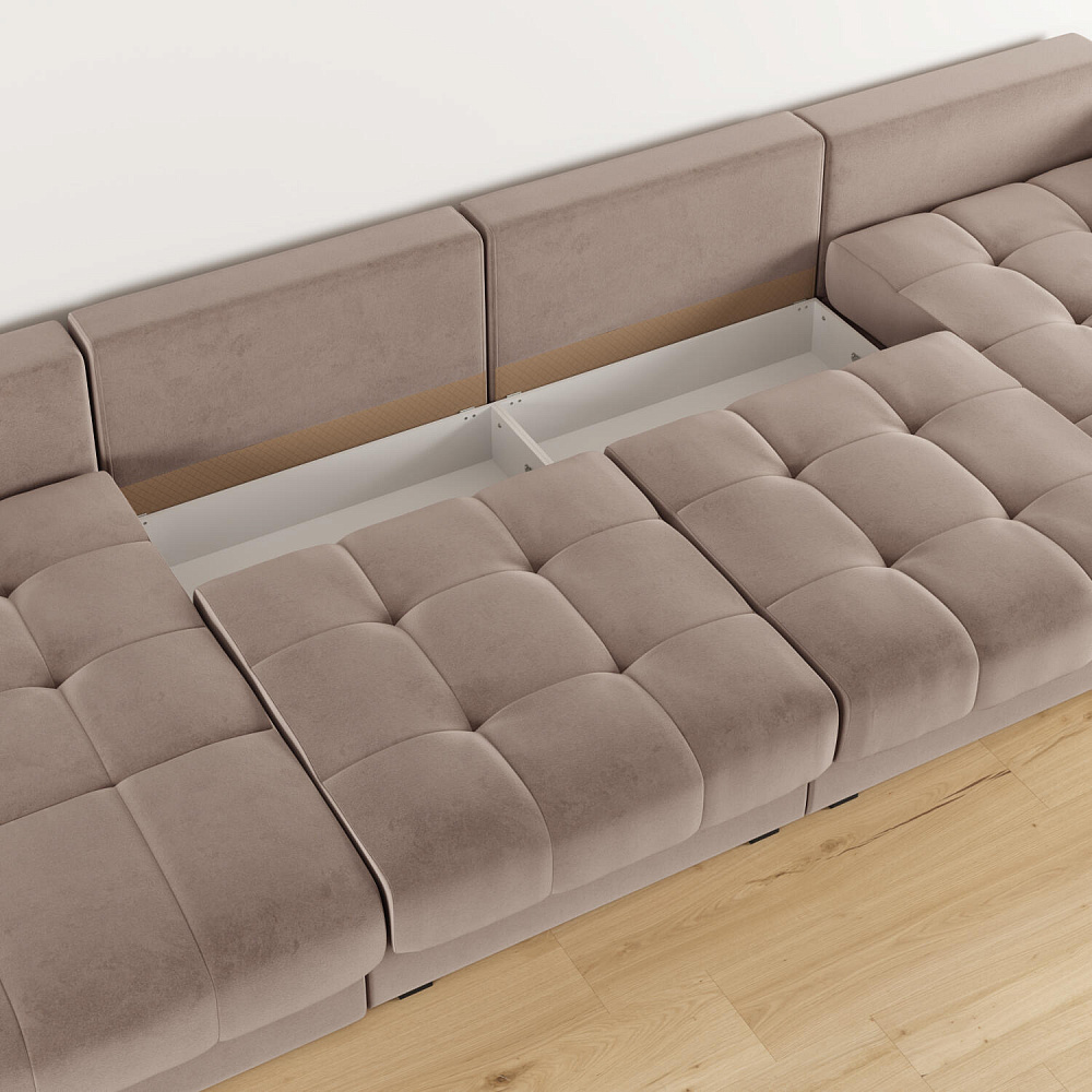 - Коробы для белья. В диванной секции и оттоманках предусмотрены просторные отделения для хранения постельного белья и других вещей.