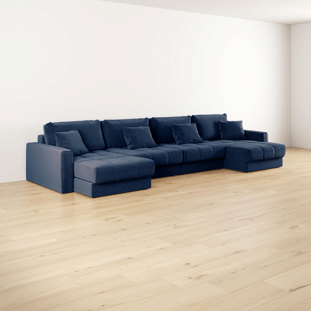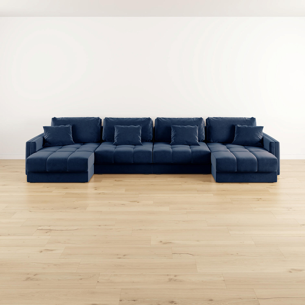 П-образный угловой диван «Дензел» — лучший вариант для ценителей комфорта и удобства в сочетании со стильным дизайном. Диван обладает глубокой посадкой, а приспинные и декоративные подушки позволят создать удобное место для отдыха. Угловая модель с двумя оттоманками займёт своё идеальное место в пространстве комнаты или студии. Спинка модели выполнена в обивочной ткани, что даёт возможность использовать диван для зонирования комнаты.