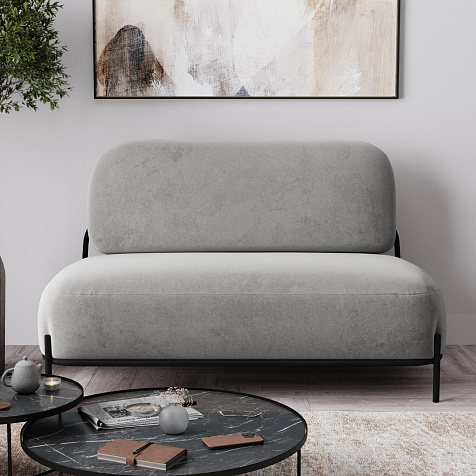 Двухместный диван «Луффи» — оригинальная модель, которая украсит любую комнату в современном стиле. Контрастное сочетание мягких форм и тонких металлических опор поможет создать уютную и легкую зону отдыха. Задняя часть спинки выполнена в обивочной ткани, что позволяет разместить диван в центре комнаты.