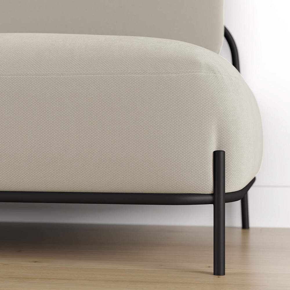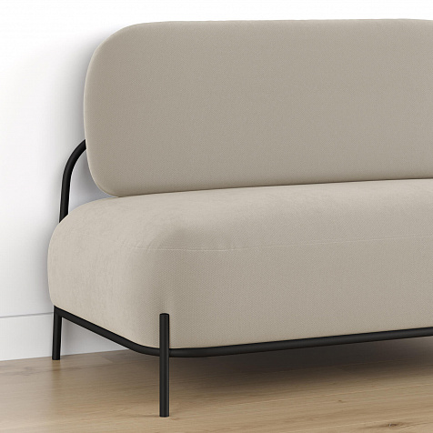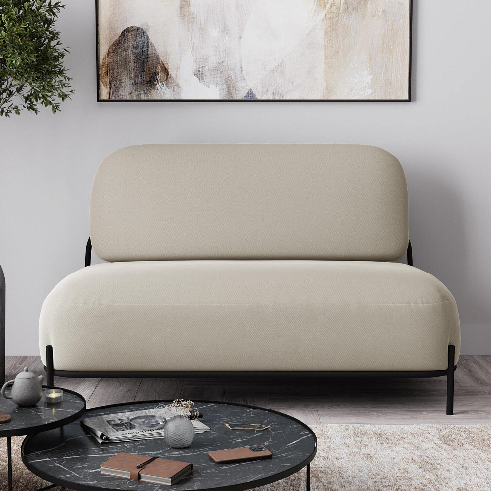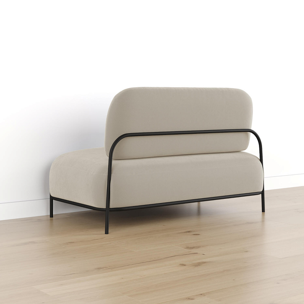 Двухместный диван «Луффи» — оригинальная модель, которая украсит любую комнату в современном стиле. Контрастное сочетание мягких форм и тонких металлических опор поможет создать уютную и легкую зону отдыха. Задняя часть спинки выполнена в обивочной ткани, что позволяет разместить диван в центре комнаты.