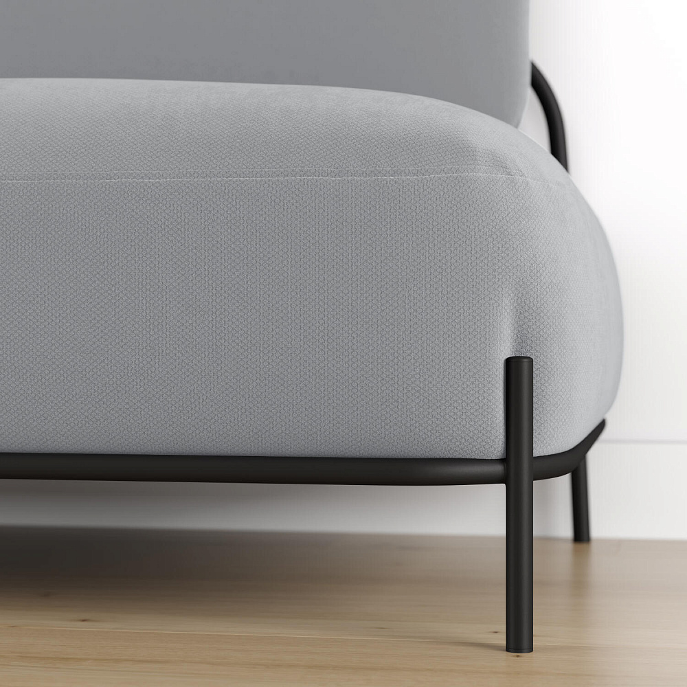Двухместный диван «Луффи» — оригинальная модель, которая украсит любую комнату в современном стиле. Контрастное сочетание мягких форм и тонких металлических опор поможет создать уютную и легкую зону отдыха. Задняя часть спинки выполнена в обивочной ткани, что позволяет разместить диван в центре комнаты.