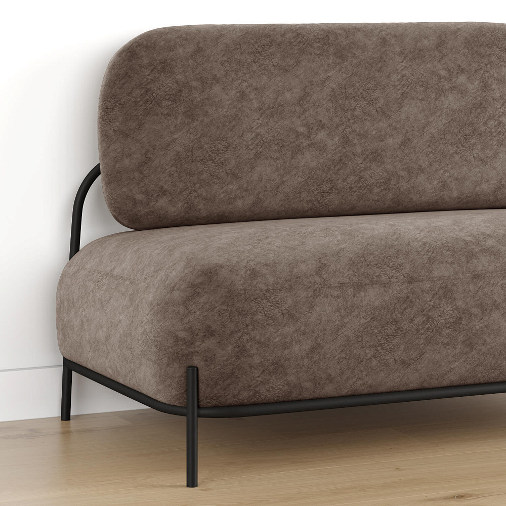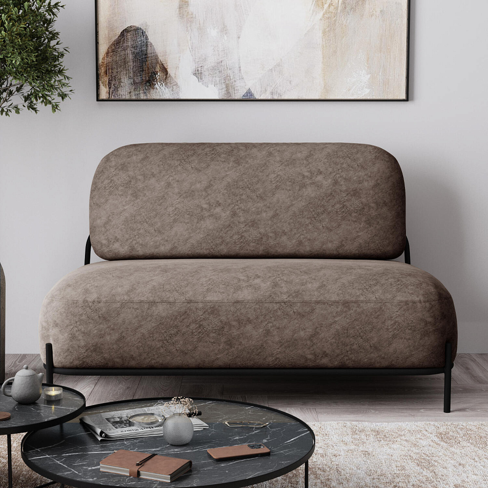 Двухместный диван «Луффи» — оригинальная модель, которая украсит любую комнату в современном стиле. Контрастное сочетание мягких форм и тонких металлических опор поможет создать уютную и легкую зону отдыха. Задняя часть спинки выполнена в обивочной ткани, что позволяет разместить диван в центре комнаты.