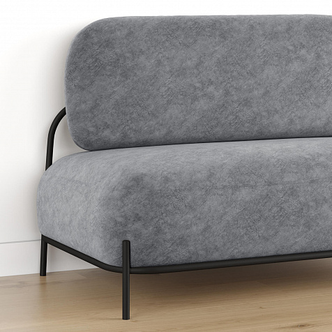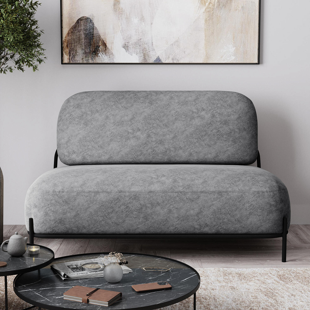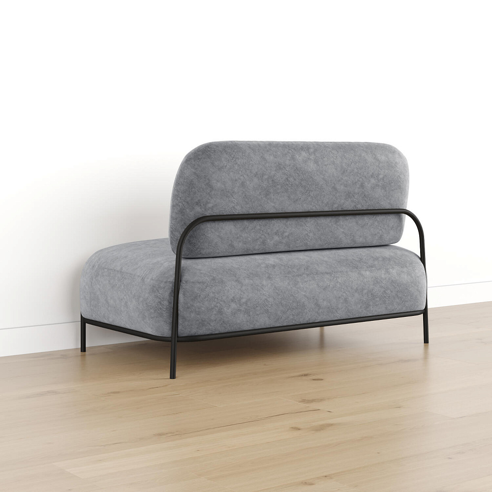 Двухместный диван «Луффи» — оригинальная модель, которая украсит любую комнату в современном стиле. Контрастное сочетание мягких форм и тонких металлических опор поможет создать уютную и легкую зону отдыха. Задняя часть спинки выполнена в обивочной ткани, что позволяет разместить диван в центре комнаты.
