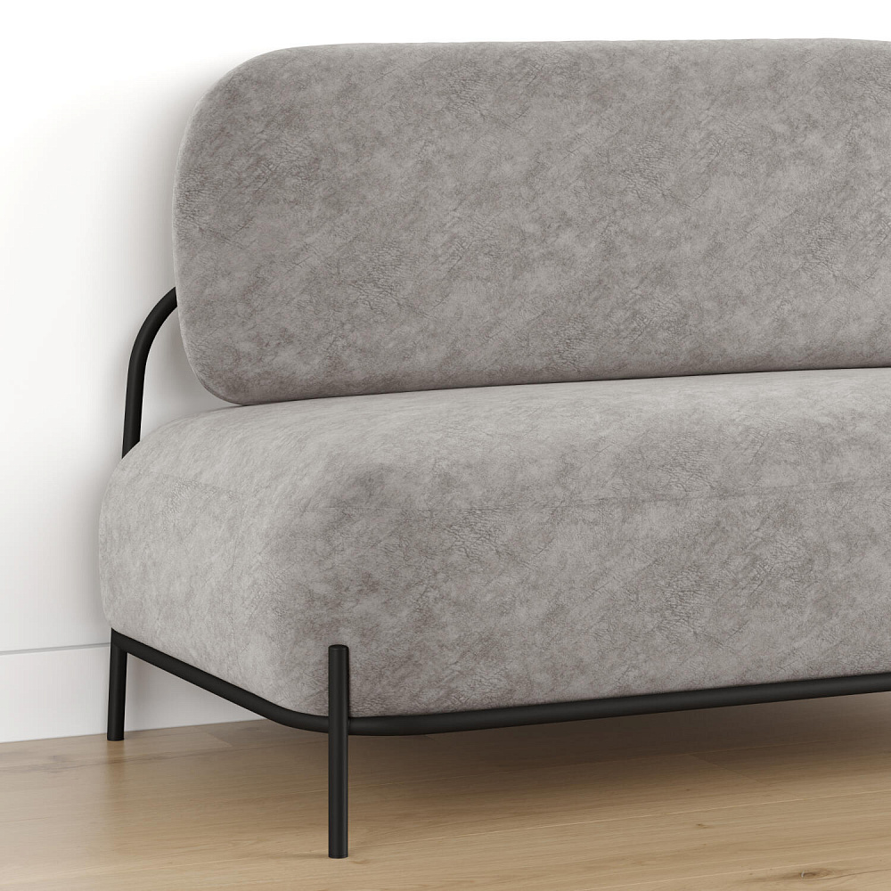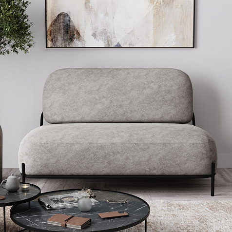 Двухместный диван «Луффи» — оригинальная модель, которая украсит любую комнату в современном стиле. Контрастное сочетание мягких форм и тонких металлических опор поможет создать уютную и легкую зону отдыха. Задняя часть спинки выполнена в обивочной ткани, что позволяет разместить диван в центре комнаты.