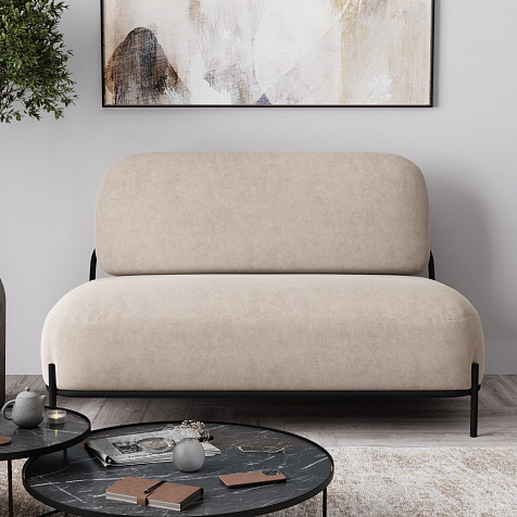 Двухместный диван «Луффи» — оригинальная модель, которая украсит любую комнату в современном стиле. Контрастное сочетание мягких форм и тонких металлических опор поможет создать уютную и легкую зону отдыха. Задняя часть спинки выполнена в обивочной ткани, что позволяет разместить диван в центре комнаты.