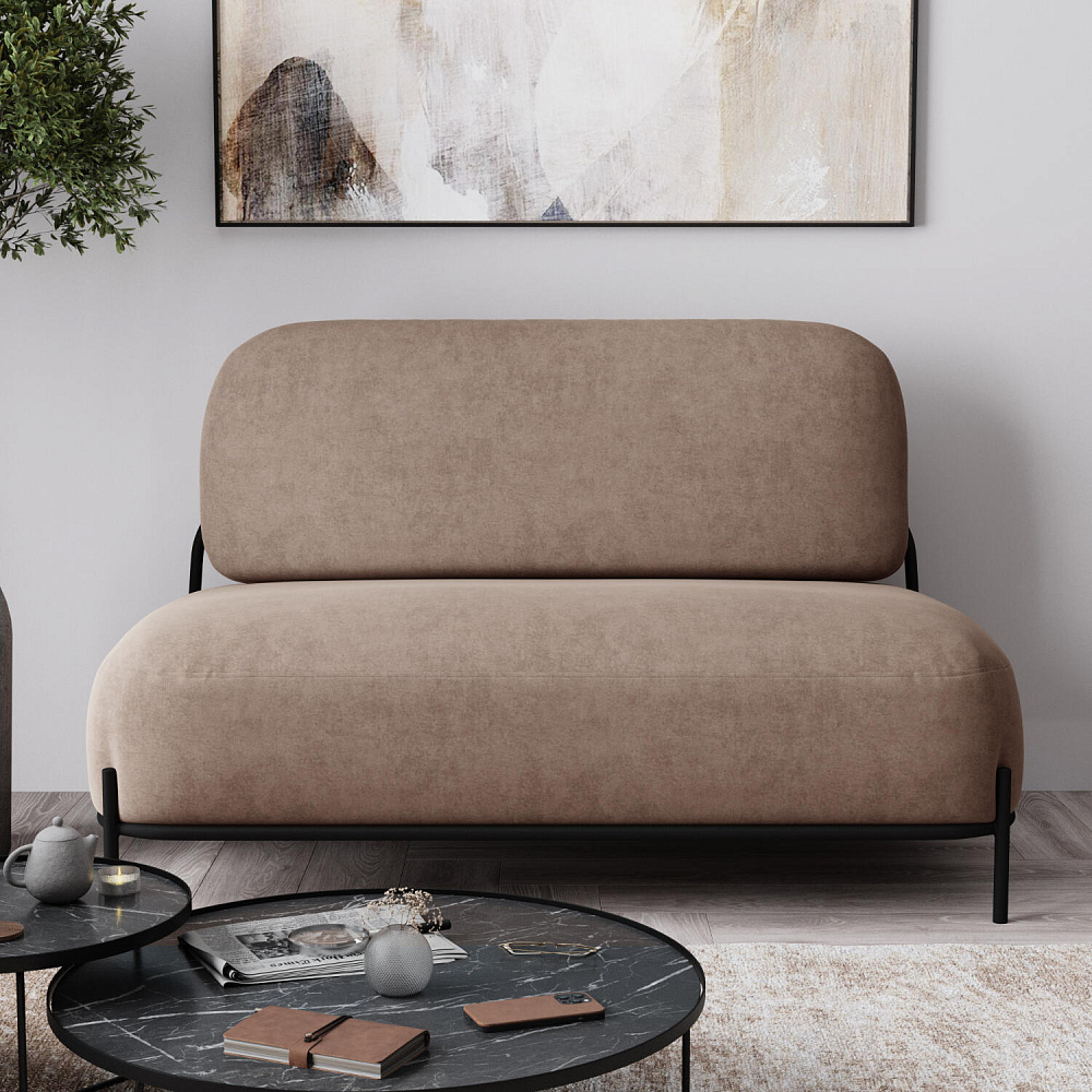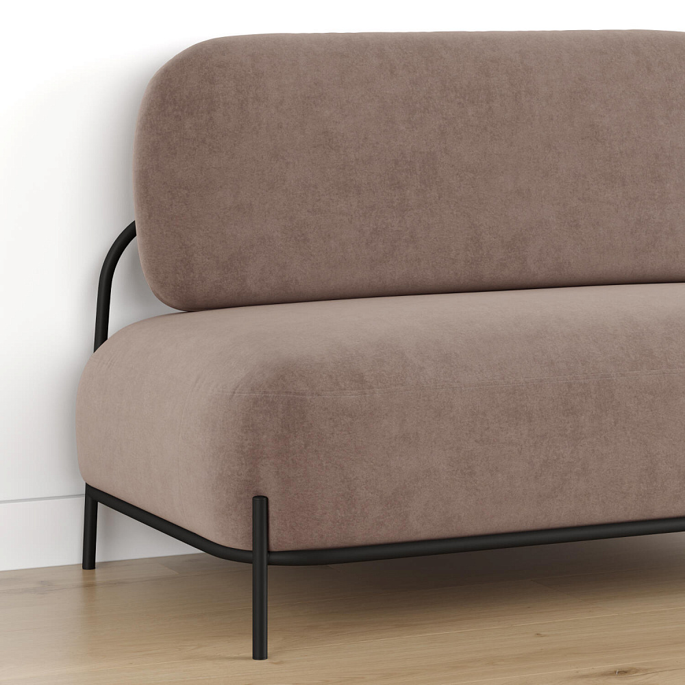 Двухместный диван «Луффи» — оригинальная модель, которая украсит любую комнату в современном стиле. Контрастное сочетание мягких форм и тонких металлических опор поможет создать уютную и легкую зону отдыха. Задняя часть спинки выполнена в обивочной ткани, что позволяет разместить диван в центре комнаты.