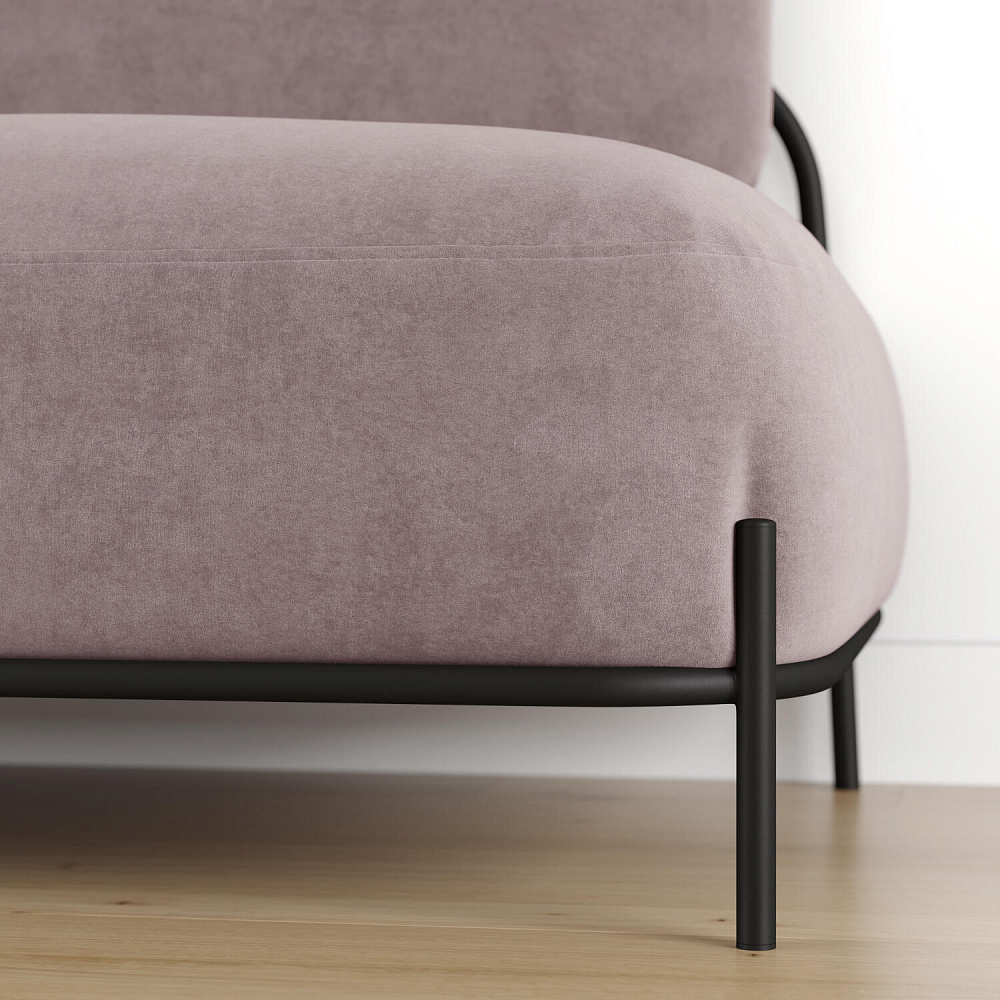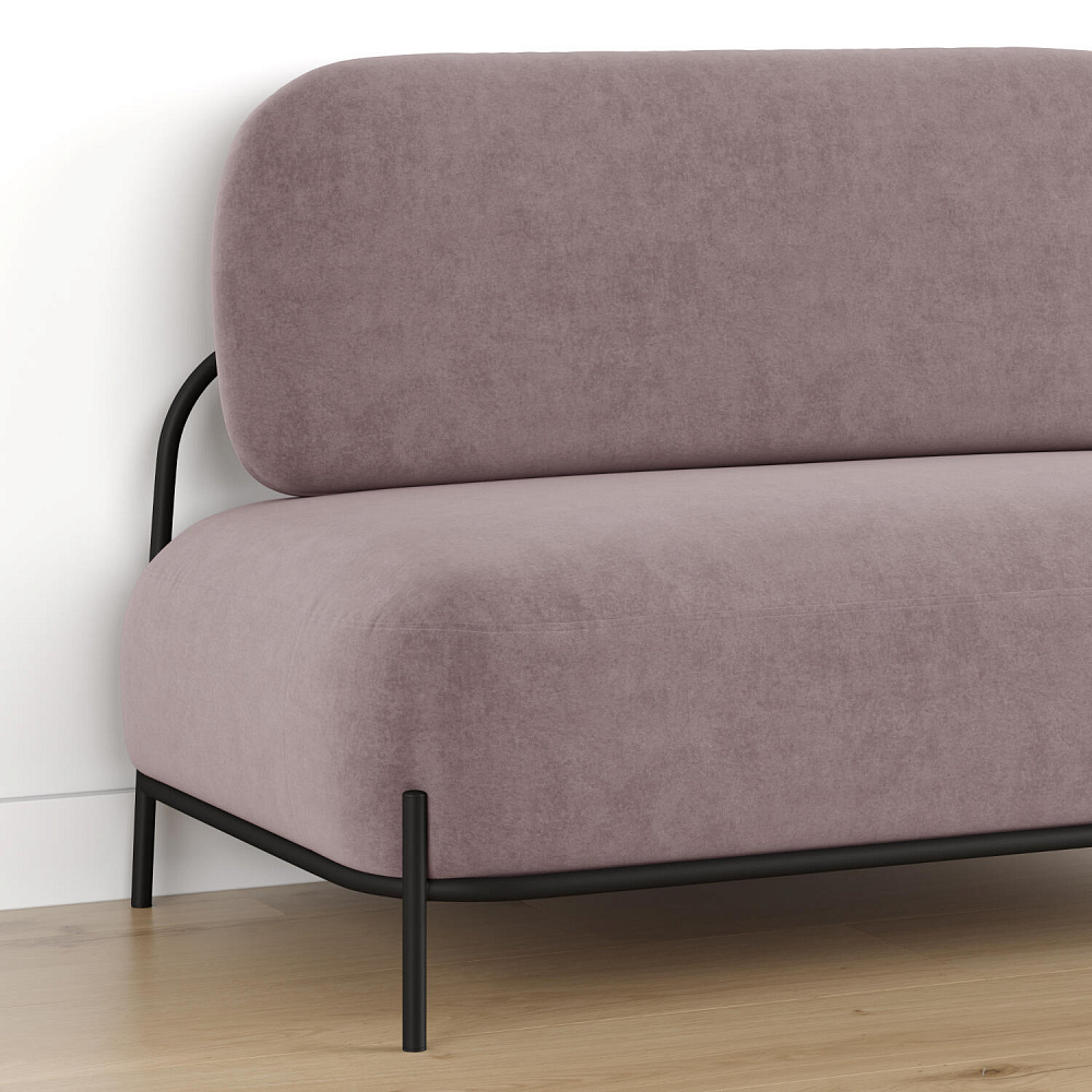Двухместный диван «Луффи» — оригинальная модель, которая украсит любую комнату в современном стиле. Контрастное сочетание мягких форм и тонких металлических опор поможет создать уютную и легкую зону отдыха. Задняя часть спинки выполнена в обивочной ткани, что позволяет разместить диван в центре комнаты.