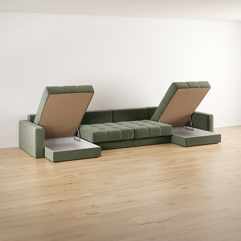 - Коробы для белья. В диванной секции и оттоманках предусмотрены просторные отделения для хранения постельного белья и других вещей.