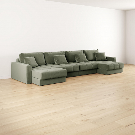 П-образный угловой диван «Дензел» — лучший вариант для ценителей комфорта и удобства в сочетании со стильным дизайном. Диван обладает глубокой посадкой, а приспинные и декоративные подушки позволят создать удобное место для отдыха. Угловая модель с двумя оттоманками займёт своё идеальное место в пространстве комнаты или студии. Спинка модели выполнена в обивочной ткани, что даёт возможность использовать диван для зонирования комнаты.