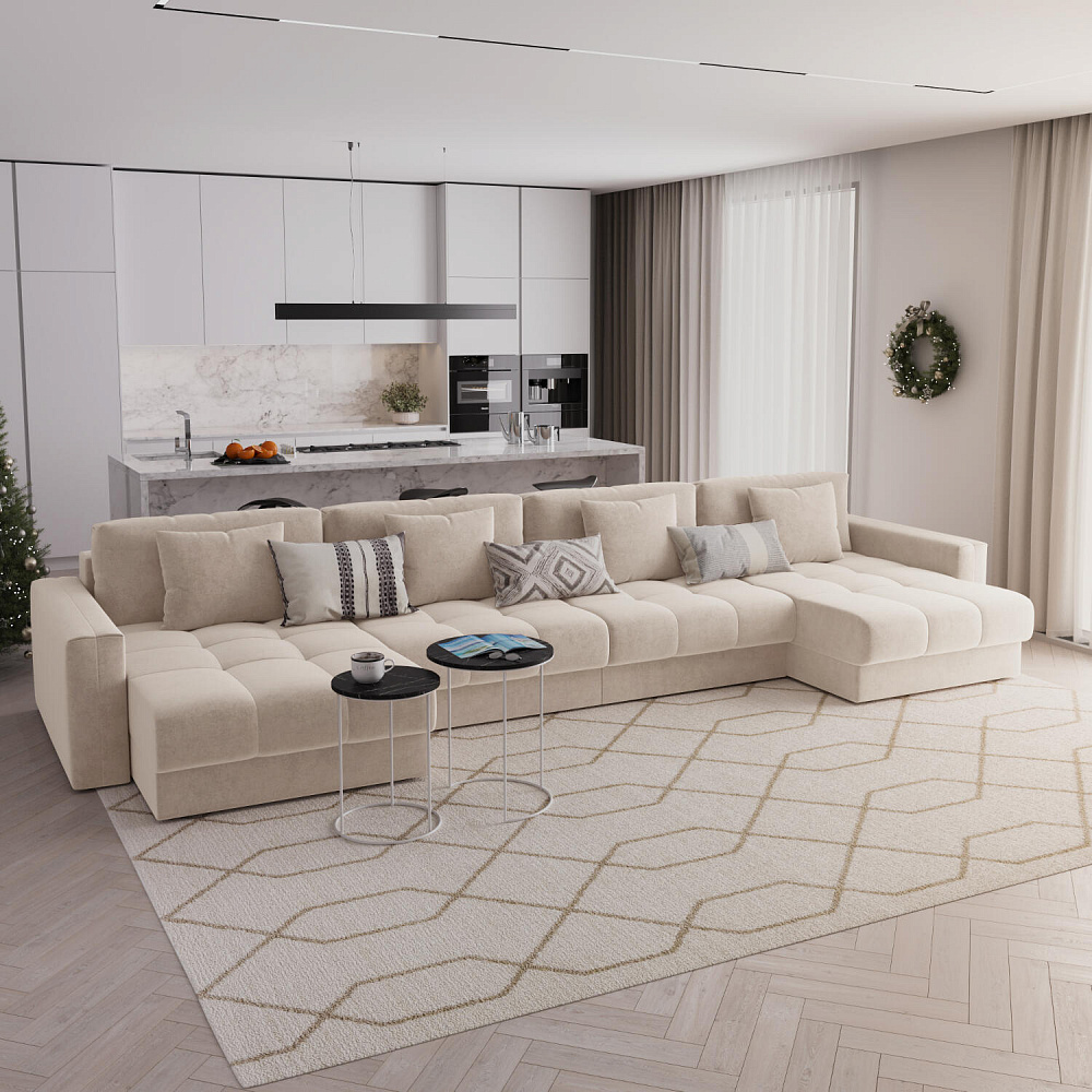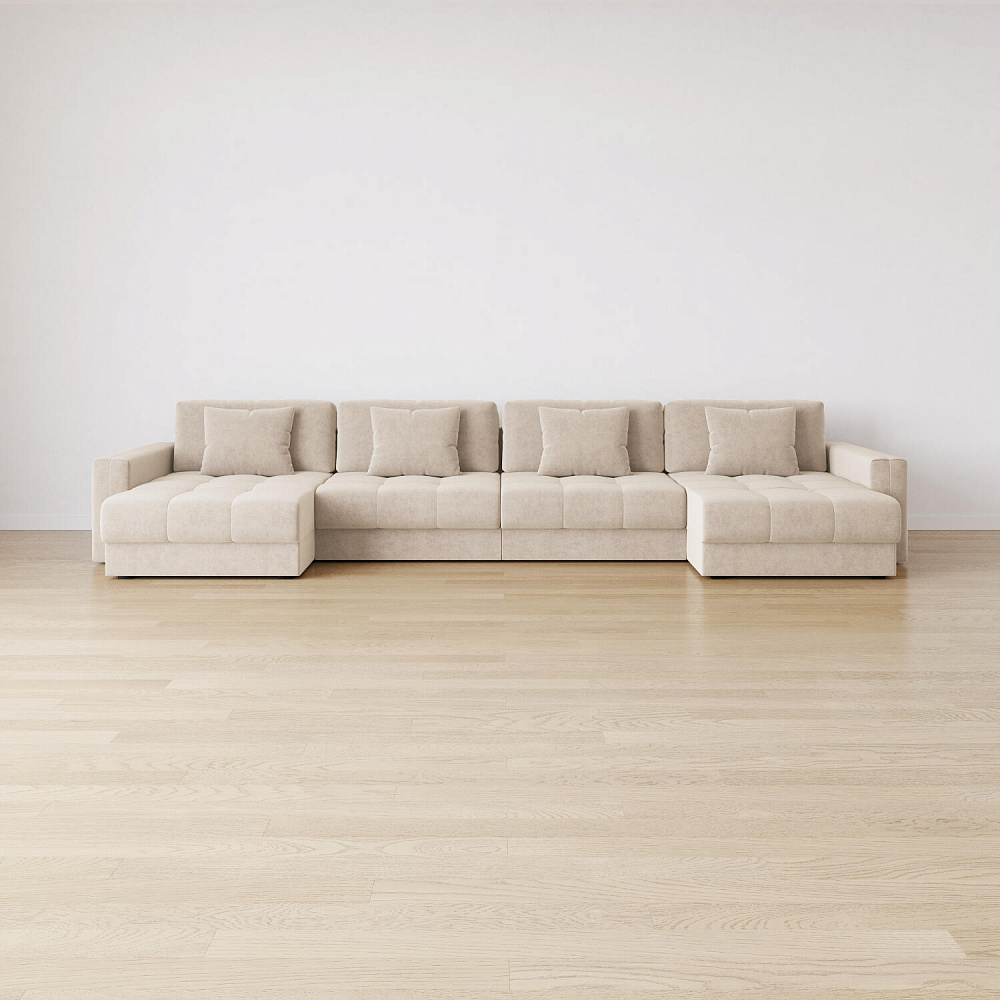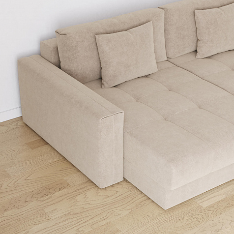П-образный угловой диван «Дензел» — лучший вариант для ценителей комфорта и удобства в сочетании со стильным дизайном. Диван обладает глубокой посадкой, а приспинные и декоративные подушки позволят создать удобное место для отдыха. Угловая модель с двумя оттоманками займёт своё идеальное место в пространстве комнаты или студии. Спинка модели выполнена в обивочной ткани, что даёт возможность использовать диван для зонирования комнаты.
