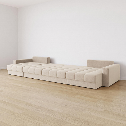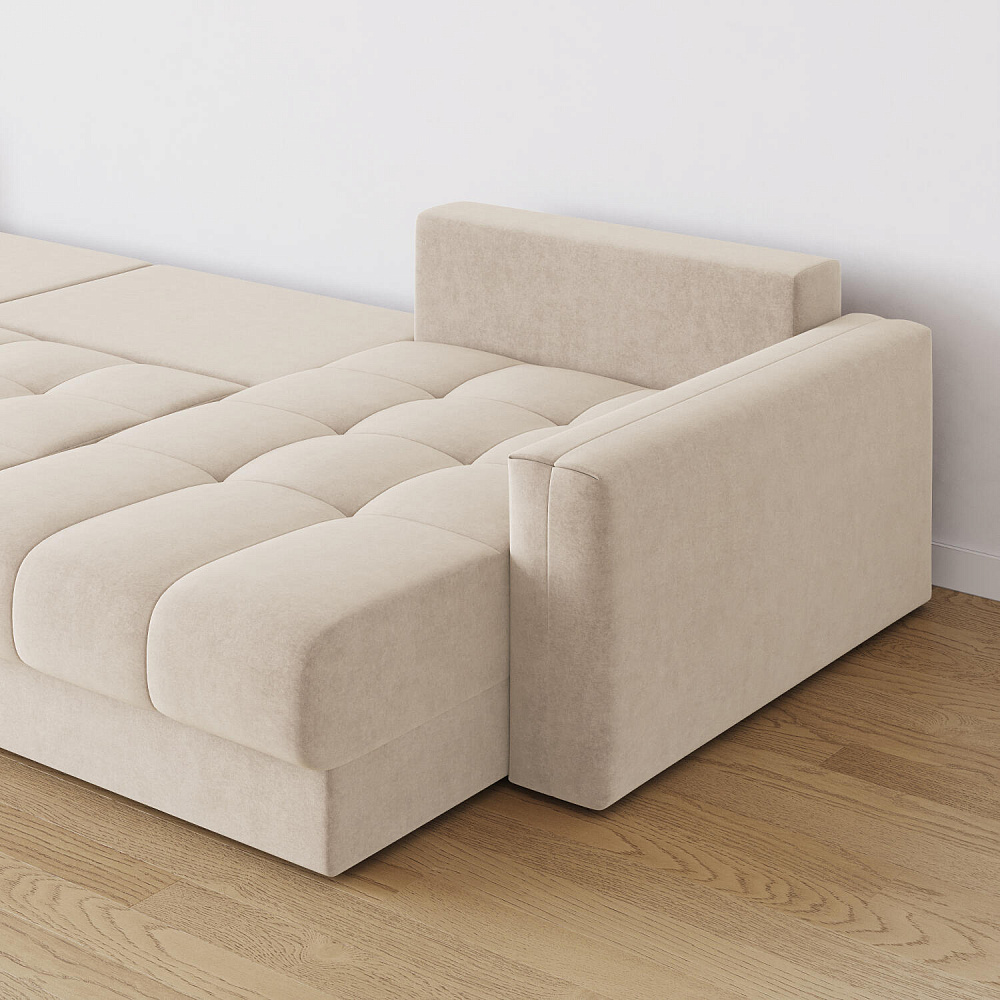- Размер спального места — 400 х 167 см. Диван легко трансформируется в широкое спальное место для комфортного сна и отдыха двух человек.