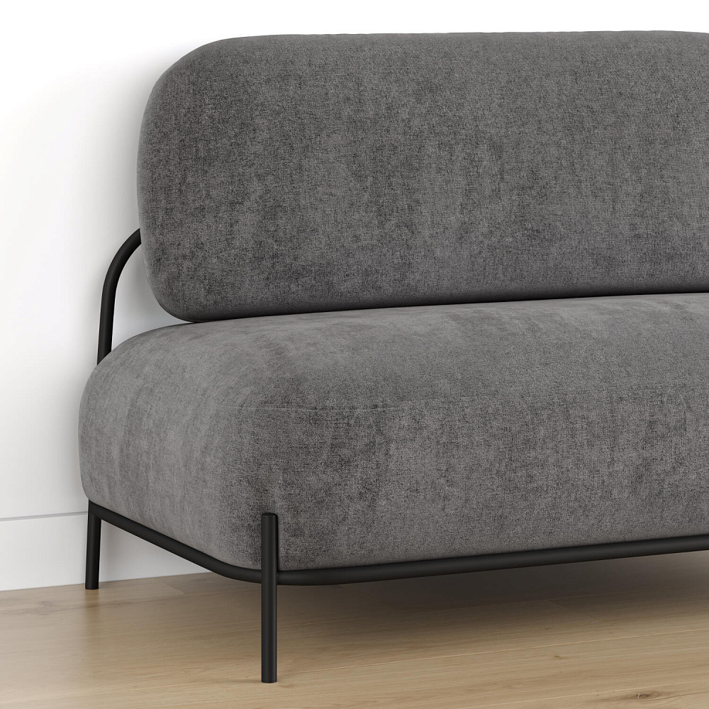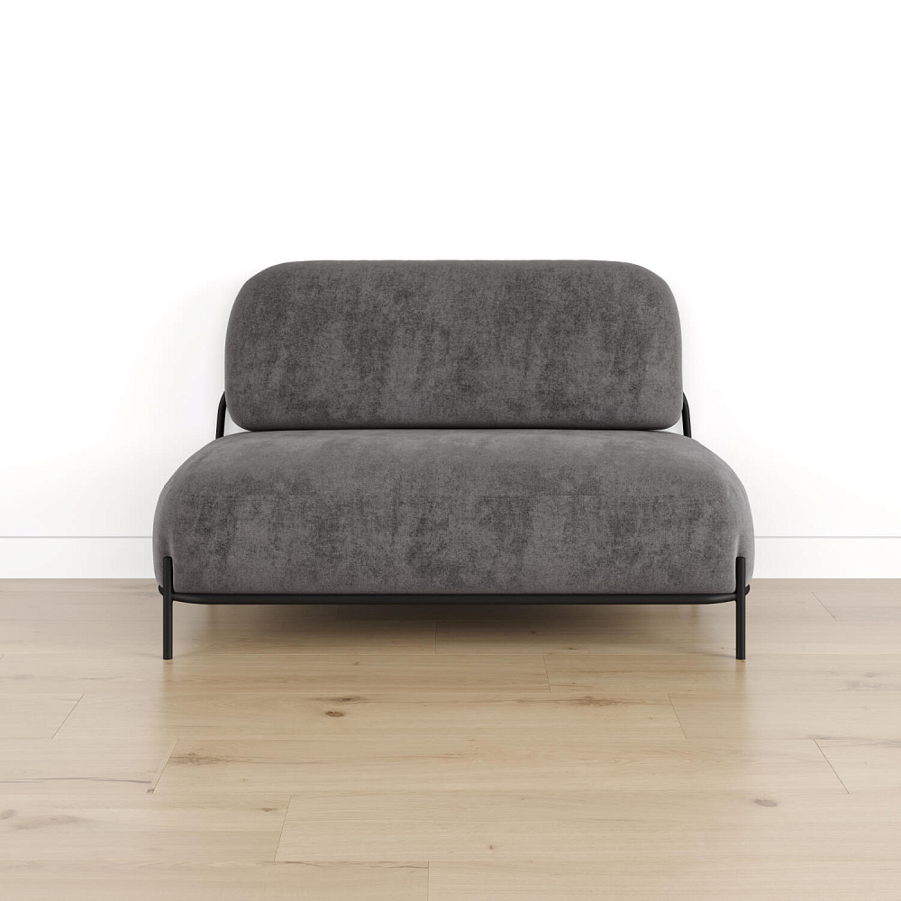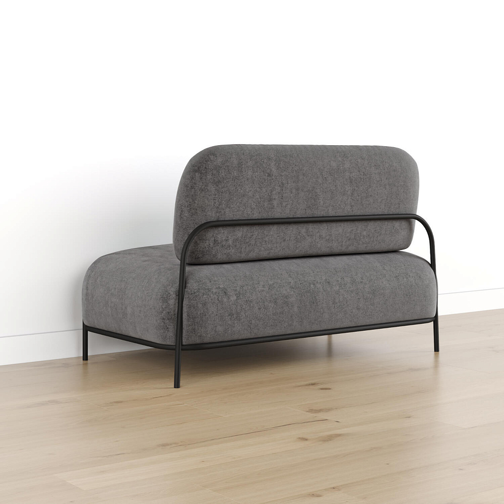 Двухместный диван «Луффи» — оригинальная модель, которая украсит любую комнату в современном стиле. Контрастное сочетание мягких форм и тонких металлических опор поможет создать уютную и легкую зону отдыха. Задняя часть спинки выполнена в обивочной ткани, что позволяет разместить диван в центре комнаты.