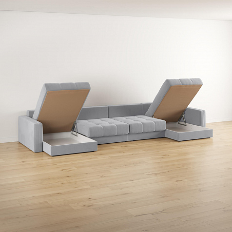 - Коробы для белья. В диванной секции и оттоманках предусмотрены просторные отделения для хранения постельного белья и других вещей.