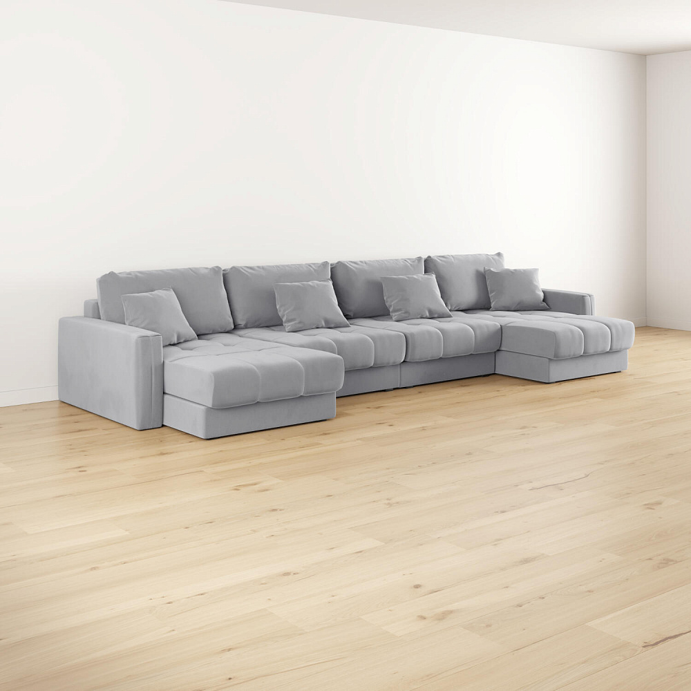 П-образный угловой диван «Дензел» — лучший вариант для ценителей комфорта и удобства в сочетании со стильным дизайном. Диван обладает глубокой посадкой, а приспинные и декоративные подушки позволят создать удобное место для отдыха. Угловая модель с двумя оттоманками займёт своё идеальное место в пространстве комнаты или студии. Спинка модели выполнена в обивочной ткани, что даёт возможность использовать диван для зонирования комнаты.
