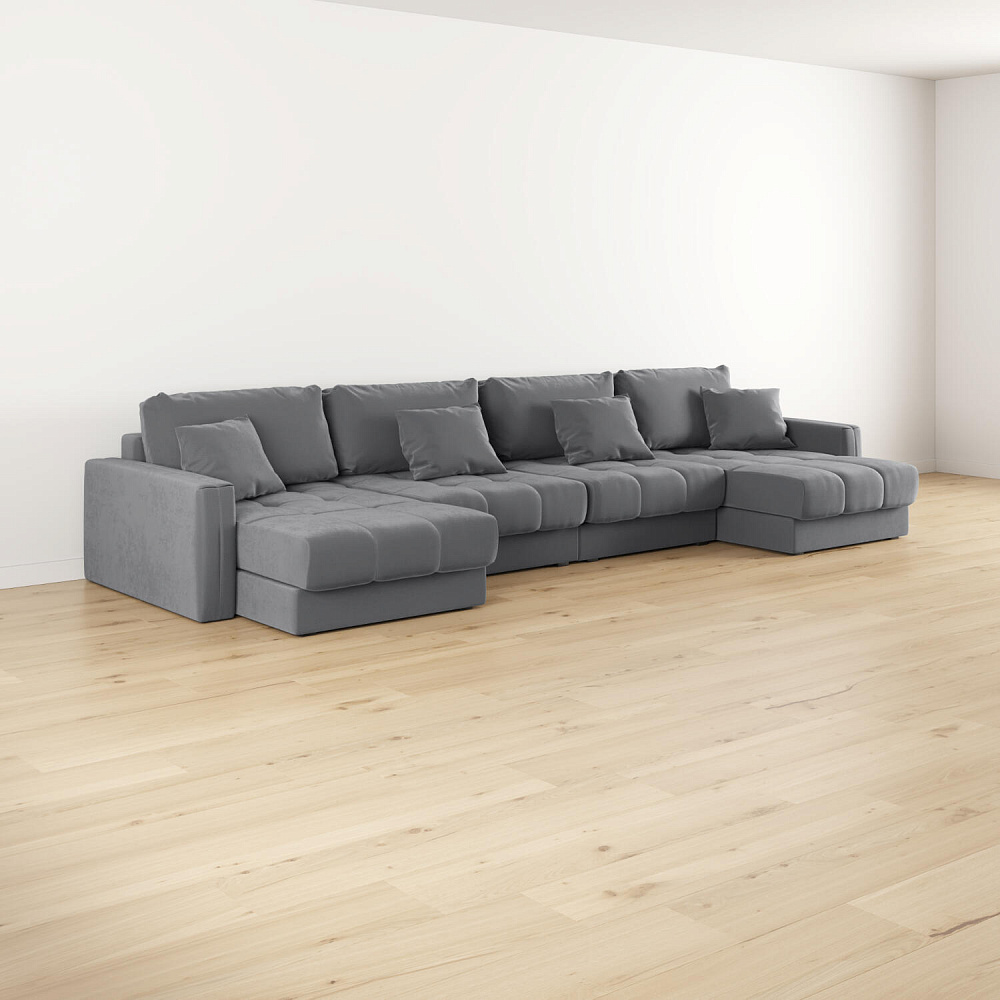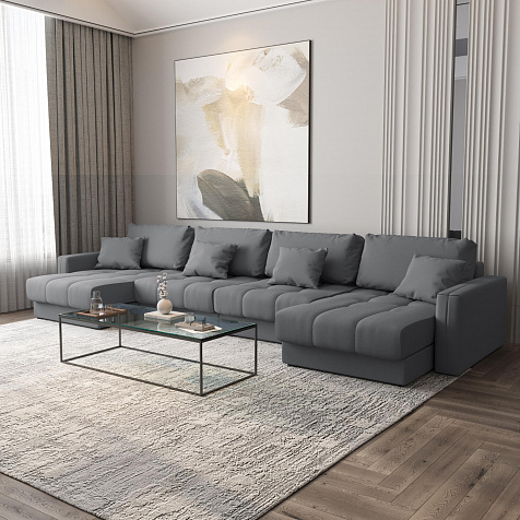 П-образный угловой диван «Дензел» — лучший вариант для ценителей комфорта и удобства в сочетании со стильным дизайном. Диван обладает глубокой посадкой, а приспинные и декоративные подушки позволят создать удобное место для отдыха. Угловая модель с двумя оттоманками займёт своё идеальное место в пространстве комнаты или студии. Спинка модели выполнена в обивочной ткани, что даёт возможность использовать диван для зонирования комнаты.