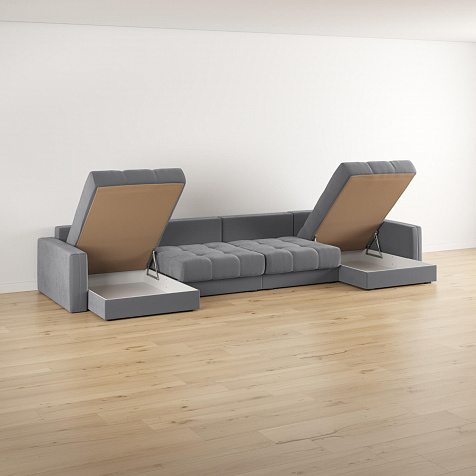 - Коробы для белья. В диванной секции и оттоманках предусмотрены просторные отделения для хранения постельного белья и других вещей.