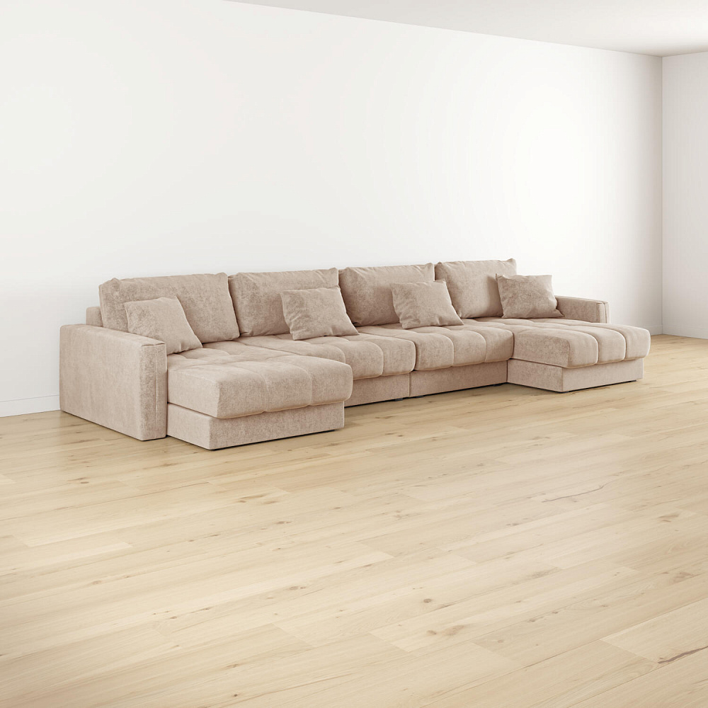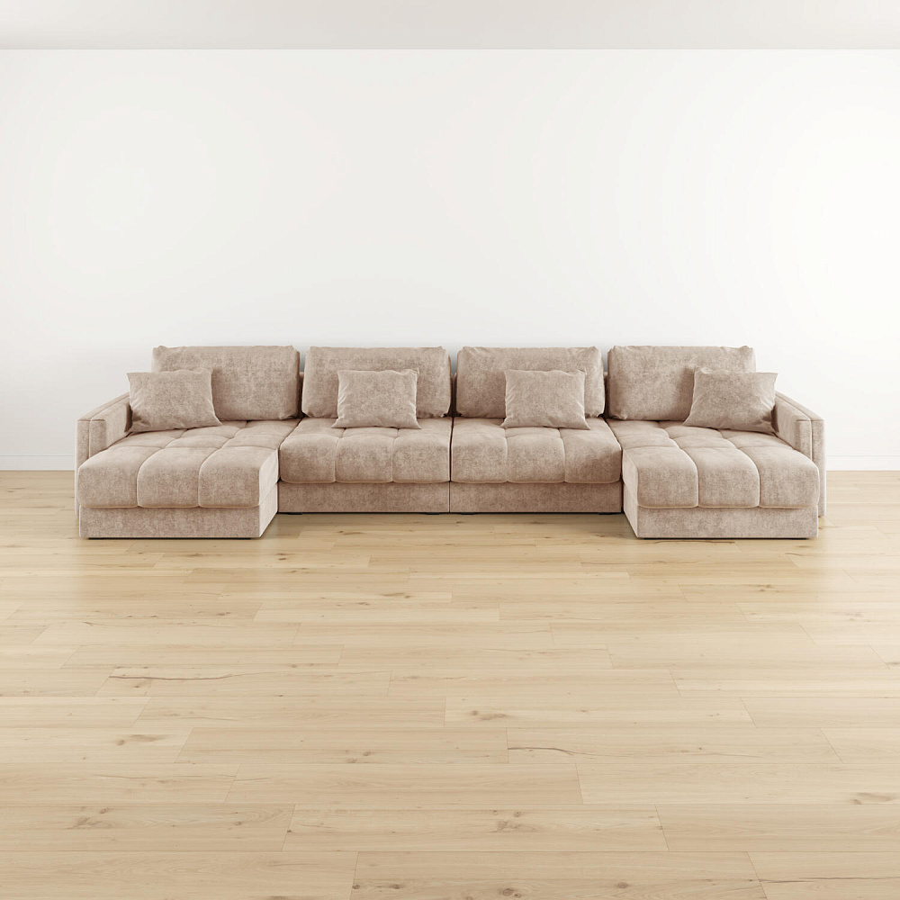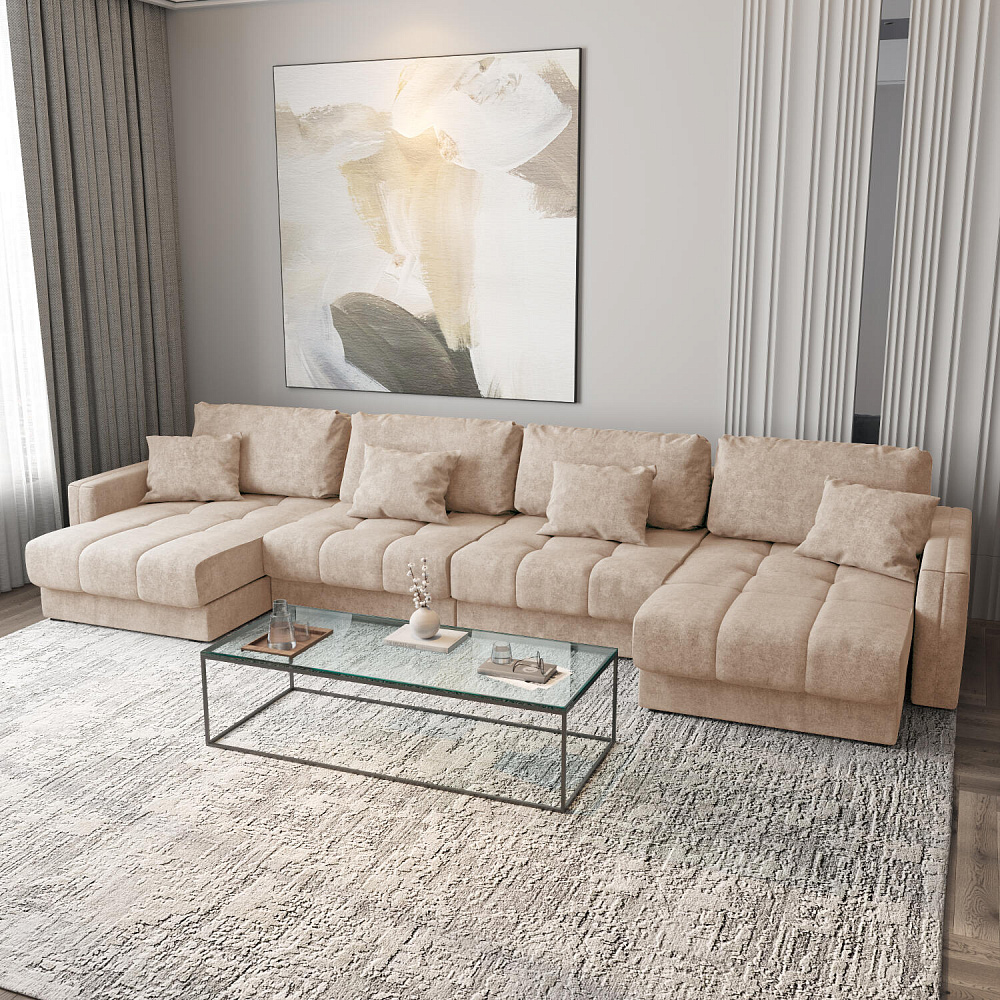 П-образный угловой диван «Дензел» — лучший вариант для ценителей комфорта и удобства в сочетании со стильным дизайном. Диван обладает глубокой посадкой, а приспинные и декоративные подушки позволят создать удобное место для отдыха. Угловая модель с двумя оттоманками займёт своё идеальное место в пространстве комнаты или студии. Спинка модели выполнена в обивочной ткани, что даёт возможность использовать диван для зонирования комнаты.