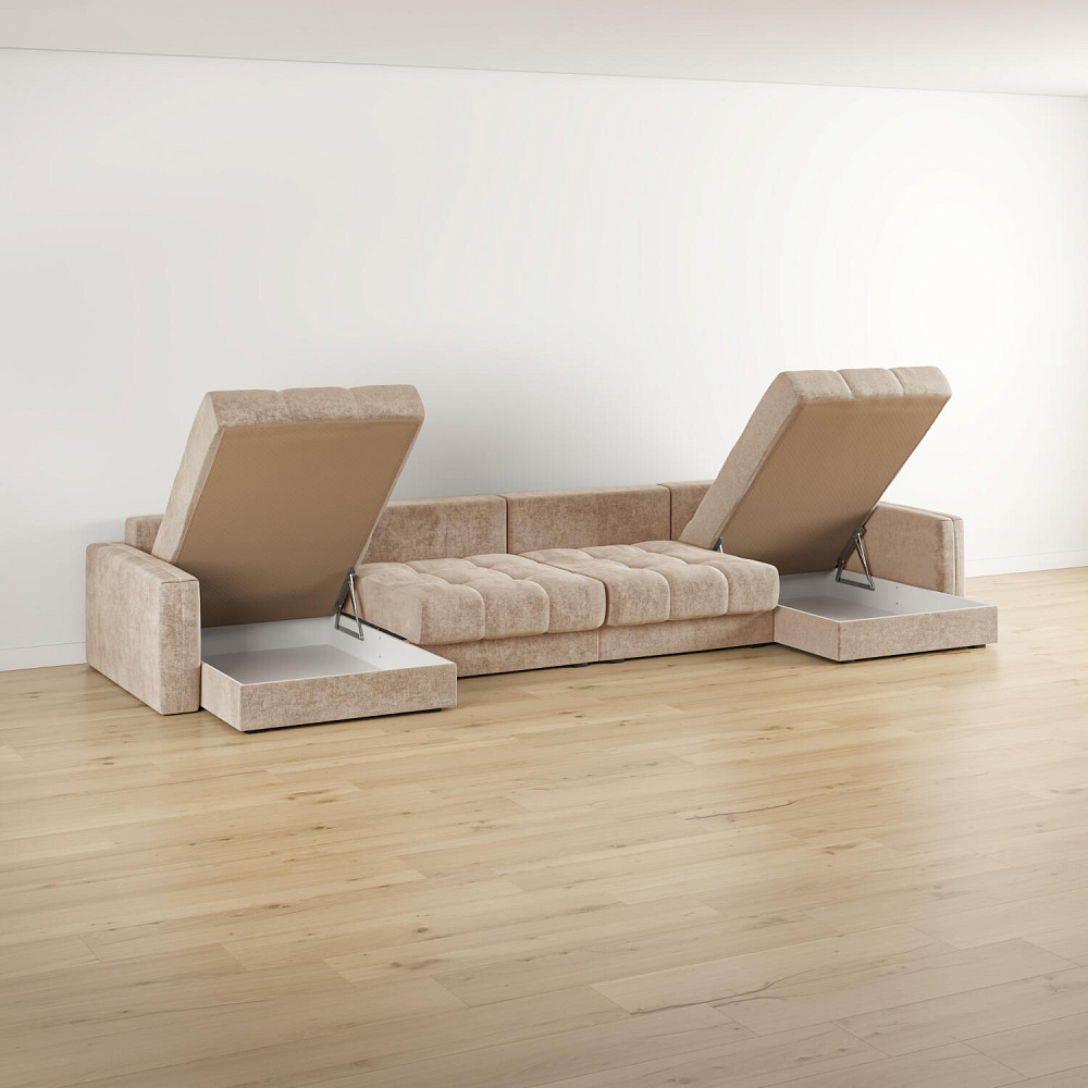 - Коробы для белья. В диванной секции и оттоманках предусмотрены просторные отделения для хранения постельного белья и других вещей.