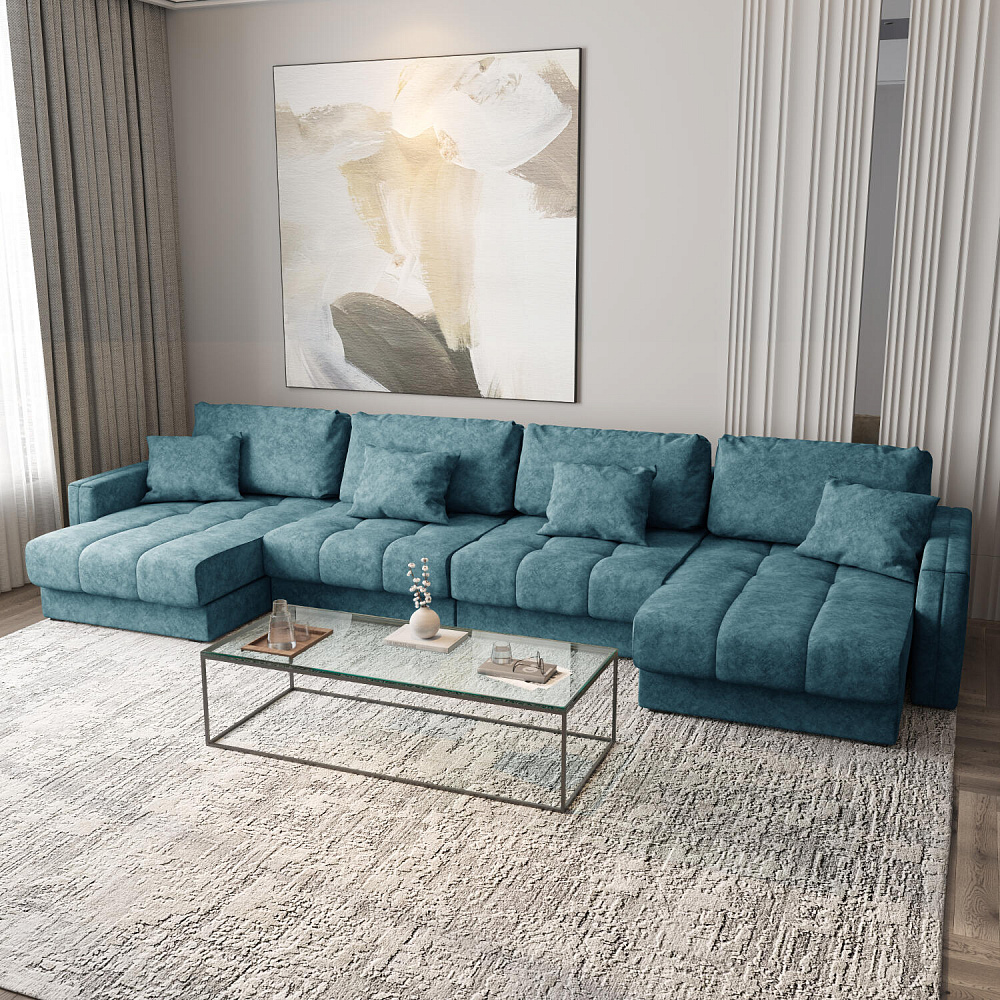 П-образный угловой диван «Дензел» — лучший вариант для ценителей комфорта и удобства в сочетании со стильным дизайном. Диван обладает глубокой посадкой, а приспинные и декоративные подушки позволят создать удобное место для отдыха. Угловая модель с двумя оттоманками займёт своё идеальное место в пространстве комнаты или студии. Спинка модели выполнена в обивочной ткани, что даёт возможность использовать диван для зонирования комнаты.