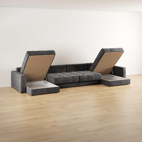 - Коробы для белья. В диванной секции и оттоманках предусмотрены просторные отделения для хранения постельного белья и других вещей.