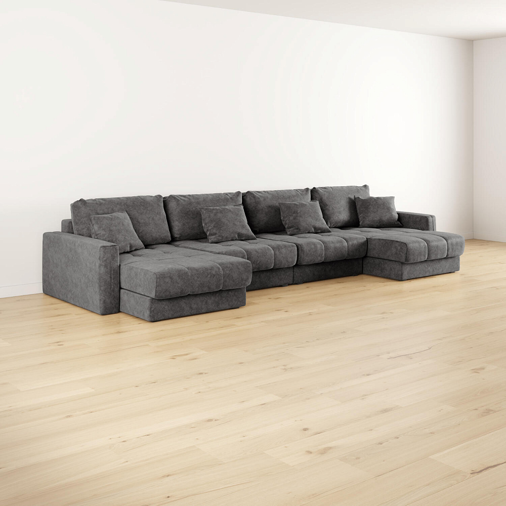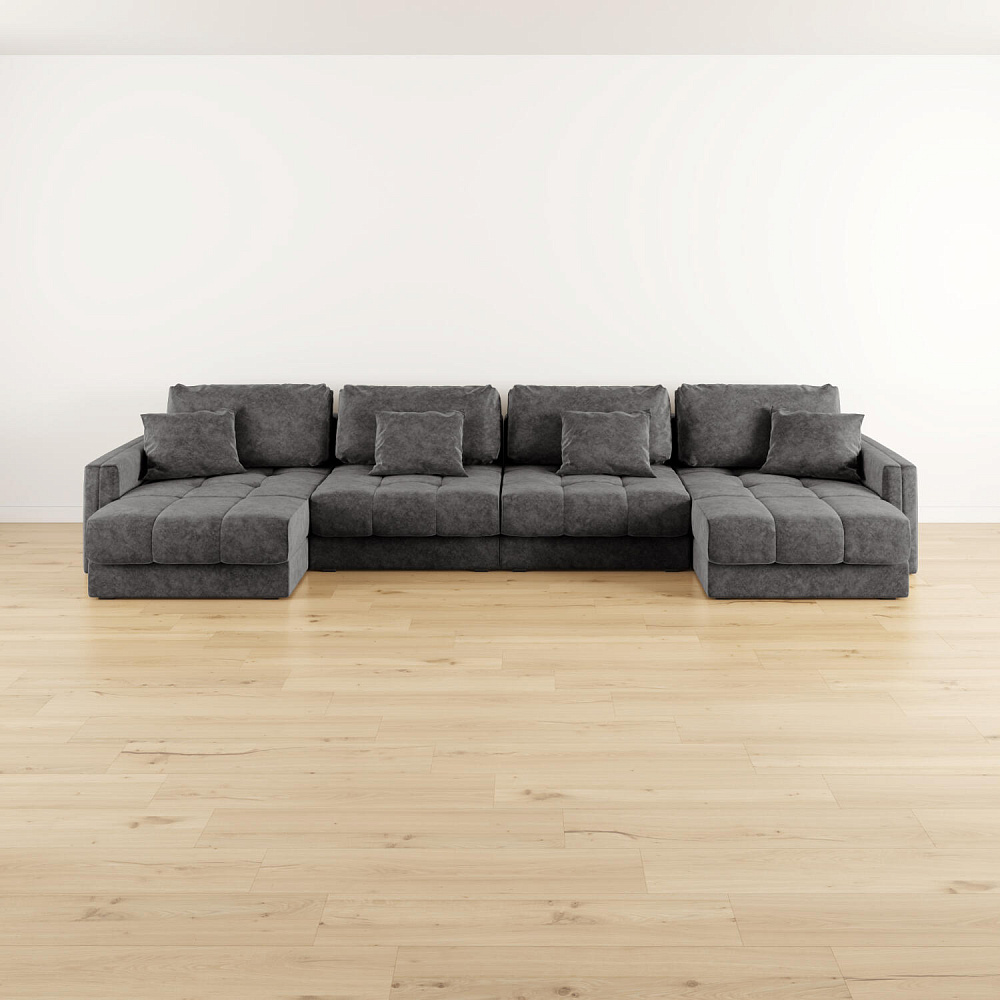 П-образный угловой диван «Дензел» — лучший вариант для ценителей комфорта и удобства в сочетании со стильным дизайном. Диван обладает глубокой посадкой, а приспинные и декоративные подушки позволят создать удобное место для отдыха. Угловая модель с двумя оттоманками займёт своё идеальное место в пространстве комнаты или студии. Спинка модели выполнена в обивочной ткани, что даёт возможность использовать диван для зонирования комнаты.