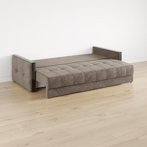 Размер спального места — 198 х 142 см. Диван легко трансформируется в полноценное двуспальное место.
