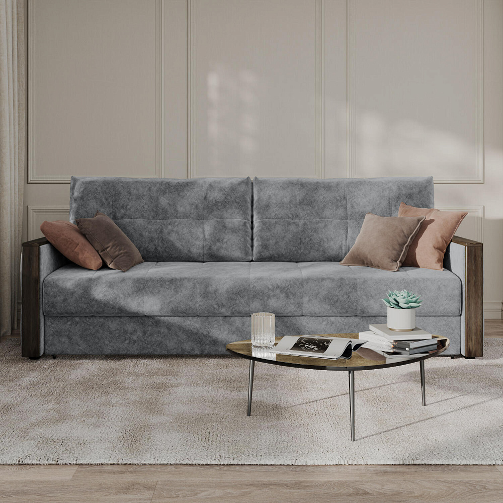 Диван «Винг» объединяет строгие геометрические формы и мягкую воздушность. Механизм трансформации «Еврокнижка» в сложенном виде позволяет сэкономить пространство в комнате, в разложенном - обеспечивает комфортное и ровное спальное место. Спинка дивана выполнена в той же обивке, что и основная часть, что даёт возможность использовать диван для зонирования комнаты. Горизонтальную поверхность на подлокотниках можно использовать в качестве мини-столешницы для небольших предметов.