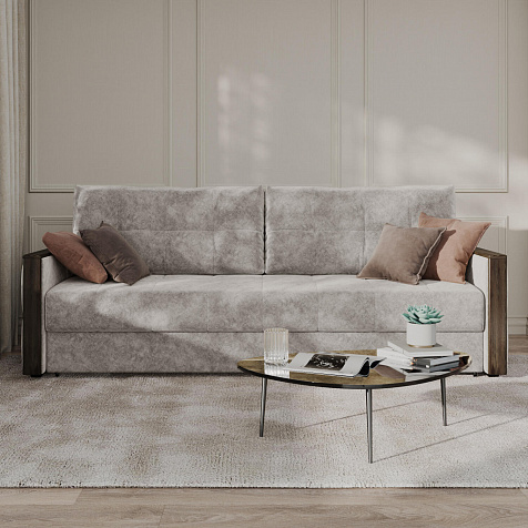 Диван «Винг» объединяет строгие геометрические формы и мягкую воздушность. Механизм трансформации «Еврокнижка» в сложенном виде позволяет сэкономить пространство в комнате, в разложенном - обеспечивает комфортное и ровное спальное место. Спинка дивана выполнена в той же обивке, что и основная часть, что даёт возможность использовать диван для зонирования комнаты. Горизонтальную поверхность на подлокотниках можно использовать в качестве мини-столешницы для небольших предметов.