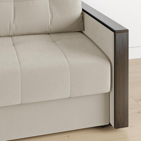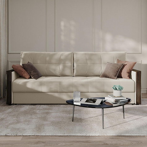 Диван «Винг» объединяет строгие геометрические формы и мягкую воздушность. Механизм трансформации «Еврокнижка» в сложенном виде позволяет сэкономить пространство в комнате, в разложенном - обеспечивает комфортное и ровное спальное место. Спинка дивана выполнена в той же обивке, что и основная часть, что даёт возможность использовать диван для зонирования комнаты. Горизонтальную поверхность на подлокотниках можно использовать в качестве мини-столешницы для небольших предметов.