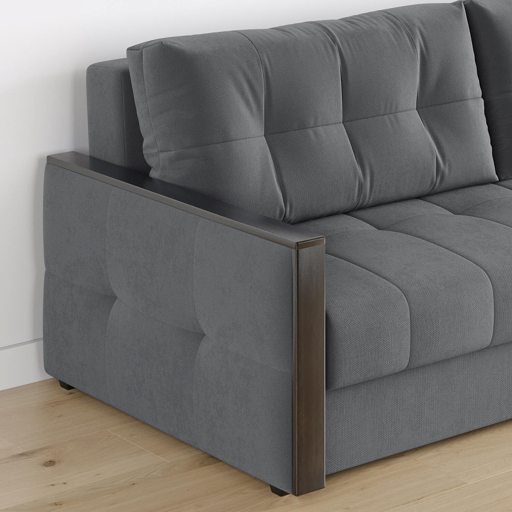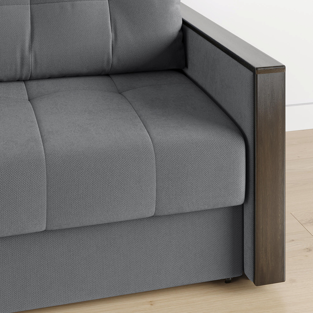 Механизм трансформации «Еврокнижка». Диван легко раскладывается — нужно выкатить вперёд сиденье и опустить спинку. Удобен механизм ещё тем, что двигается только передняя часть, поэтому отодвигать диван от стены не требуется.