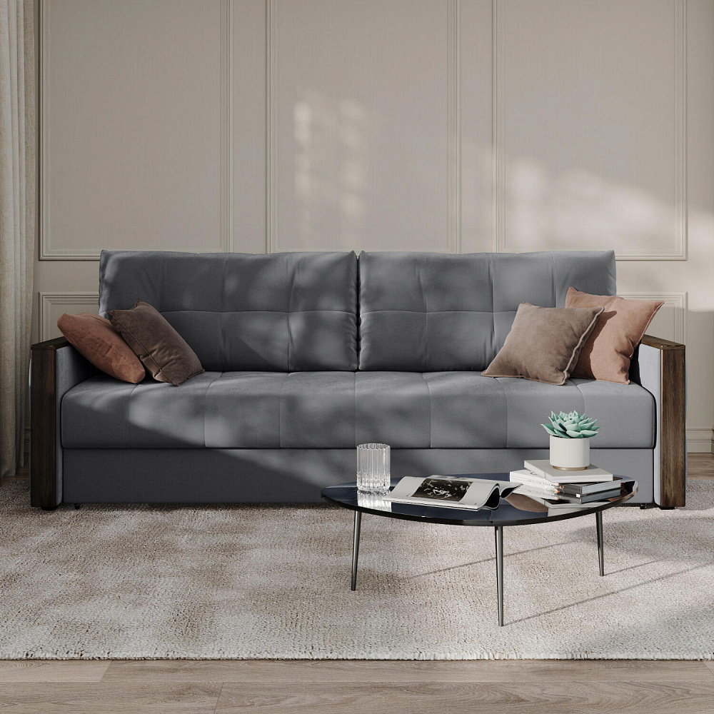 Диван «Винг» объединяет строгие геометрические формы и мягкую воздушность. Механизм трансформации «Еврокнижка» в сложенном виде позволяет сэкономить пространство в комнате, в разложенном - обеспечивает комфортное и ровное спальное место. Спинка дивана выполнена в той же обивке, что и основная часть, что даёт возможность использовать диван для зонирования комнаты. Горизонтальную поверхность на подлокотниках можно использовать в качестве мини-столешницы для небольших предметов.