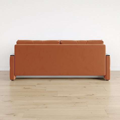Малая спинка и дизайн на 360 градусов. Благодаря малой спинке диван можно устанавливать вплотную к стене. В то же время диван прекрасно подойдёт для зонирования помещений, так как задняя спинка выполнена в обивочной ткани.
