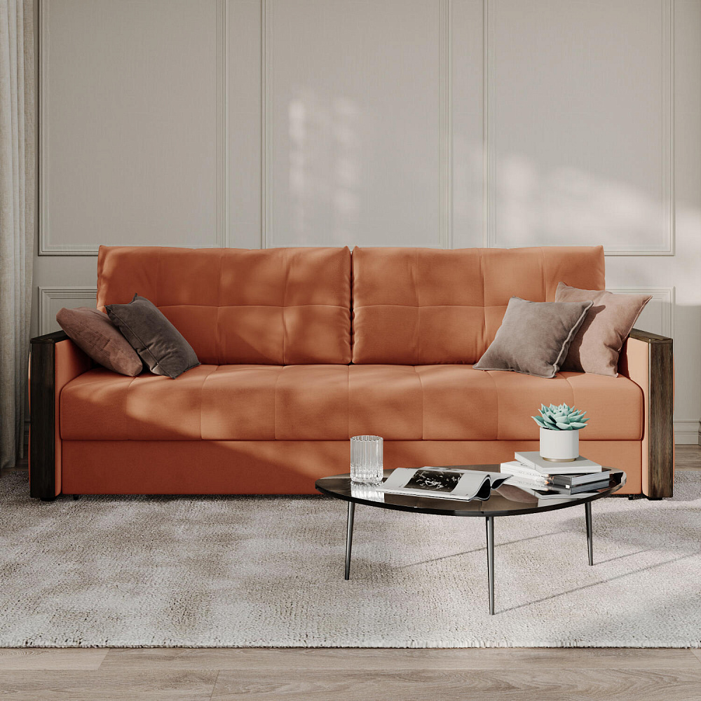Диван «Винг» объединяет строгие геометрические формы и мягкую воздушность. Механизм трансформации «Еврокнижка» в сложенном виде позволяет сэкономить пространство в комнате, в разложенном - обеспечивает комфортное и ровное спальное место. Спинка дивана выполнена в той же обивке, что и основная часть, что даёт возможность использовать диван для зонирования комнаты. Горизонтальную поверхность на подлокотниках можно использовать в качестве мини-столешницы для небольших предметов.