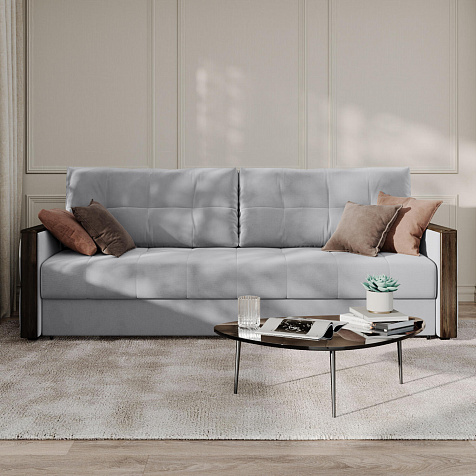 Диван «Винг» объединяет строгие геометрические формы и мягкую воздушность. Механизм трансформации «Еврокнижка» в сложенном виде позволяет сэкономить пространство в комнате, в разложенном - обеспечивает комфортное и ровное спальное место. Спинка дивана выполнена в той же обивке, что и основная часть, что даёт возможность использовать диван для зонирования комнаты. Горизонтальную поверхность на подлокотниках можно использовать в качестве мини-столешницы для небольших предметов.
