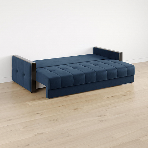 Механизм трансформации «Еврокнижка». Диван легко раскладывается — нужно выкатить вперёд сиденье и опустить спинку. Удобен механизм ещё тем, что двигается только передняя часть, поэтому отодвигать диван от стены не требуется.