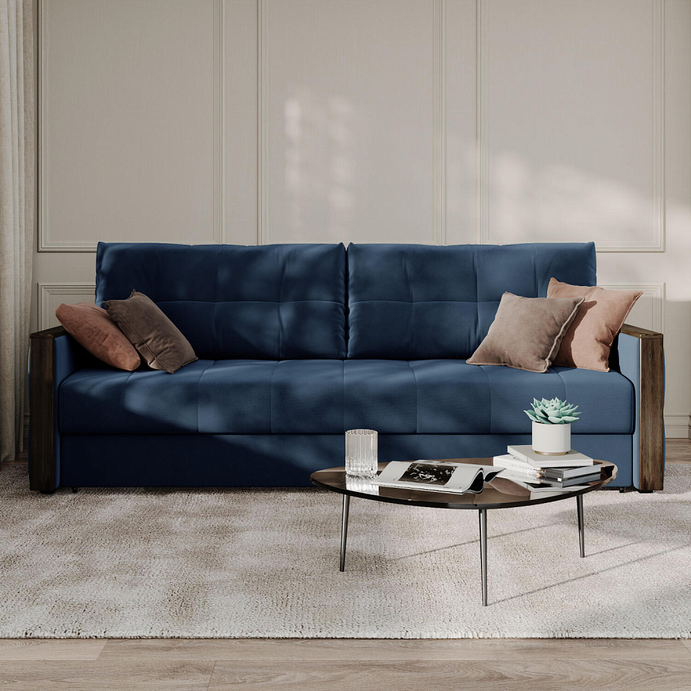 Диван «Винг» объединяет строгие геометрические формы и мягкую воздушность. Механизм трансформации «Еврокнижка» в сложенном виде позволяет сэкономить пространство в комнате, в разложенном - обеспечивает комфортное и ровное спальное место. Спинка дивана выполнена в той же обивке, что и основная часть, что даёт возможность использовать диван для зонирования комнаты. Горизонтальную поверхность на подлокотниках можно использовать в качестве мини-столешницы для небольших предметов.